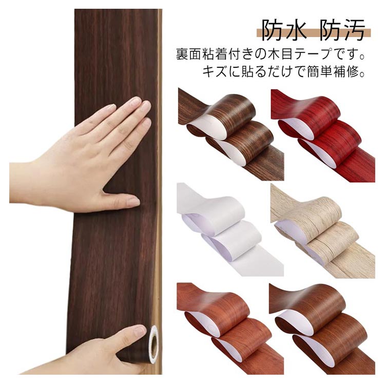 木目 テープ ドア枠 柱 窓枠 床 補修 キズ 汚れ 簡単 カットOK 目隠し 補修テープ 木口テープ 家具 リメイクシート 防水 防カビ 防油 防汚 木目柄 DIY 壁紙 デコレーション ステッカー ナチュラル ウォールナット 送料無料