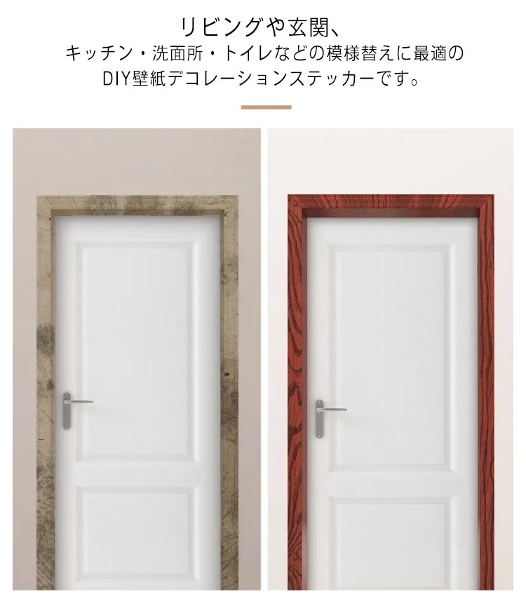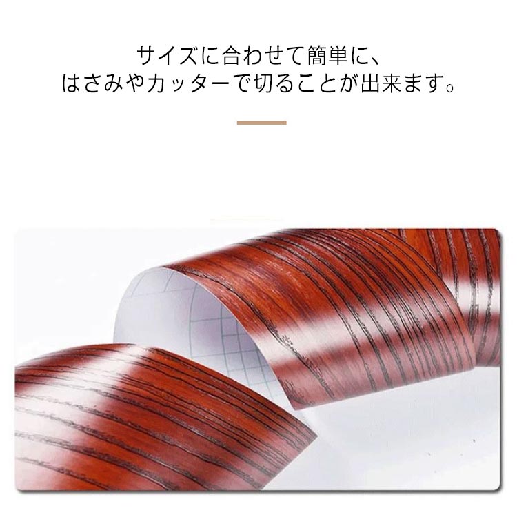 裏面粘着付きの木目テープです。キズに貼るだけで簡単補修。ドア・柱・窓枠・家具などのキズかくしや保護にもご使用いただけます。強力な粘着力があり、耐水性・耐久性にも優れています。カビや汚れがついても、水拭きで簡単に取れる。キッチンなど、油が付きやすい場所にもおすすめ!リビングや玄関、キッチン・洗面所・トイレなどの模様替えに最適のDIY壁紙デコレーションステッカーです。サイズに合わせて簡単に、はさみやカッターで切ることが出来ます。キレイにはがせるので、賃貸の方にもおすすめです。