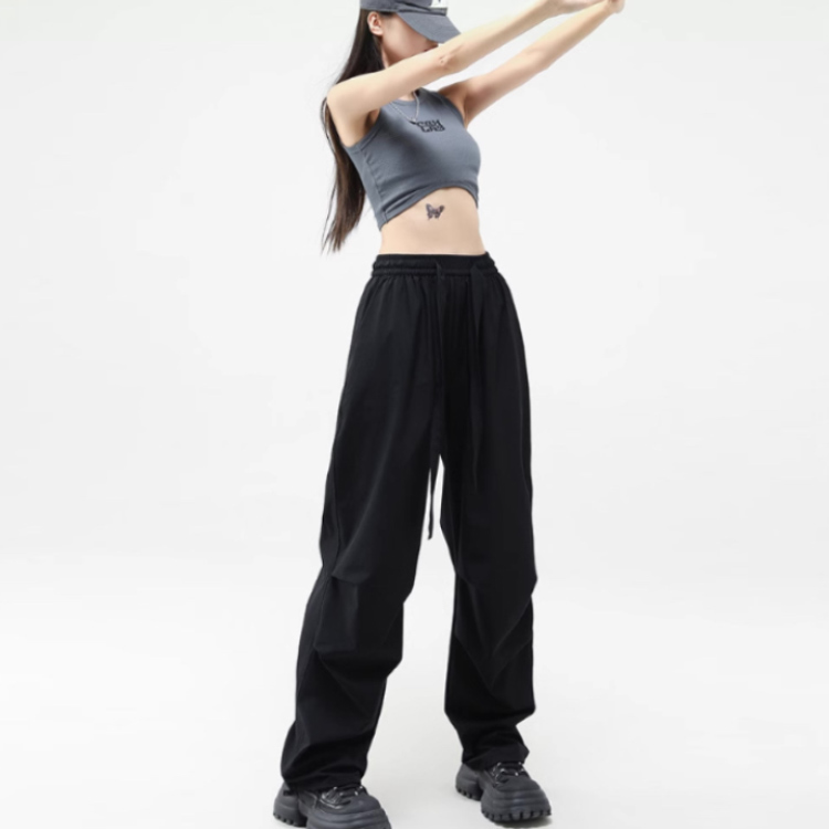 ボリュームたっぷりだけどすっきり見えるパラシュートパンツが登場しました♪丈夫なポリエステル素材でシャカシャカ感があります。窮屈感なく、速乾性に優れいています。裾はドローコード仕様なの着丈やお好みのシルエットで着用できちゃいます!ハイウエストがショート丈トップスとのコーデを引き立ててくれます。ナチュラルカラーがコーデに甘さをプラスしてくれます。薄すぎず厚すぎず中厚の程よい厚み感でオールシーズンご着用いただけます♪ダンスに限らず、普段着としても着やすくおしゃれです!