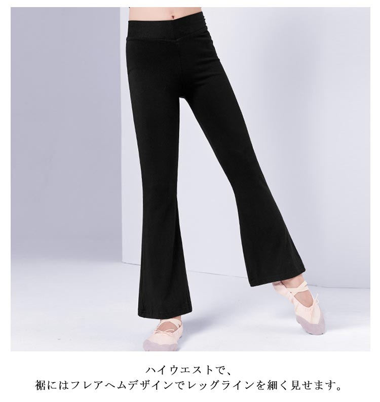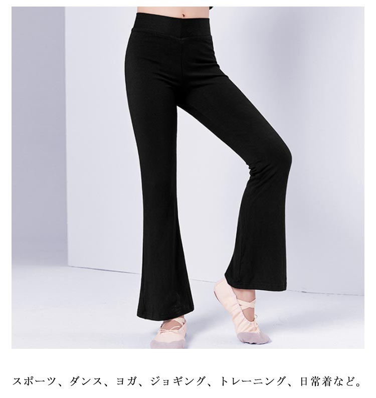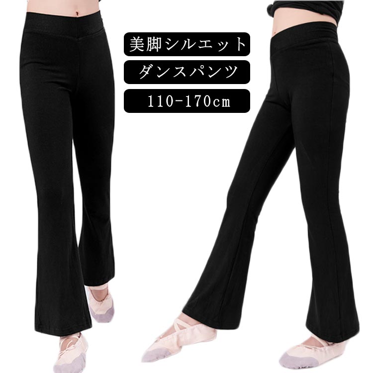【送料無料】ダンスパンツ キッズ ジャズパンツ 子供 110 120 130 140 150 160 170cm ジュニア 男の子 女の子 美脚パンツ バレエ ダンス衣装 黒 バレエパンツ フレキシブル レギンス 普段着 フレアパンツ ブラック