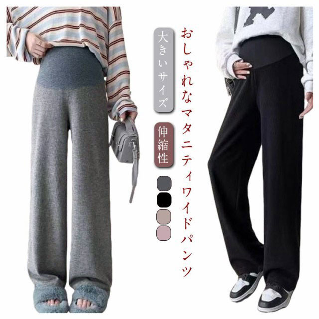 ワイドパンツ レディース マタニティ パンツ 秋冬 春 リブパンツ 大きいサイズ ゆったり マタニティパンツ 伸縮性 ストレッチ 妊婦 美シルエット レディースパンツ 動きやすい オフィス フォーマル 無地 仕事 事務所