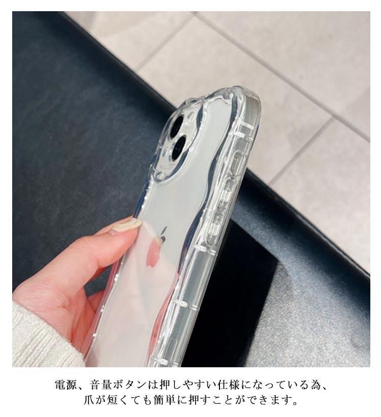 電源、音量ボタンは押しやすい仕様になっている為、爪が短くても簡単に押すことができます。いまSNSで話題の可愛いiPhoneケースです。流行りのウェーブのようなうねうねフレームアイフォンケース。やわらかいTPU素材のソフトケースで衝撃を吸収しやすく着脱が楽ちん。ちょっとしたプレゼントなどにも喜ばれます。
