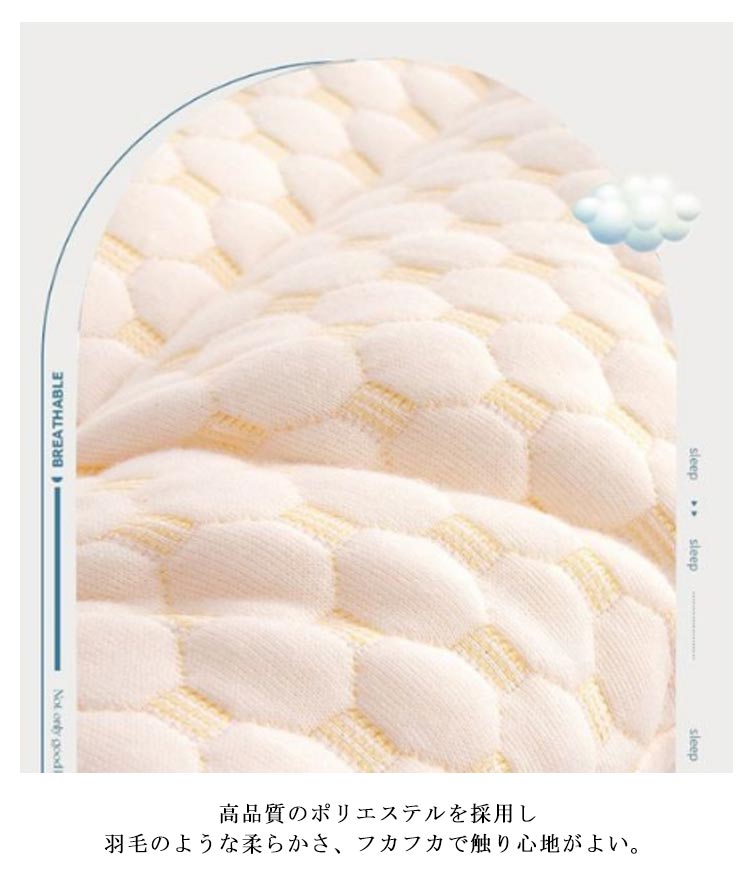 | 頭全体を優しくサポートでき、爽やかな睡眠環境を与えられ、気持ちよく眠れます。48×74cm 40×60cm 高品質のポリエステルを採用し、羽毛のような柔らかさ、フカフカで触り心地がよい。 カバーにはお肌に優しい素材を採用し、柔らかくて手触り良い、通気性に良い。 ストレス解消しながら呼吸をスムーズさせ、イビキ軽減などの効果も期待できます。 変形しにくく、家庭用洗濯機で丸洗いができ、いつも清潔保つ。 | |