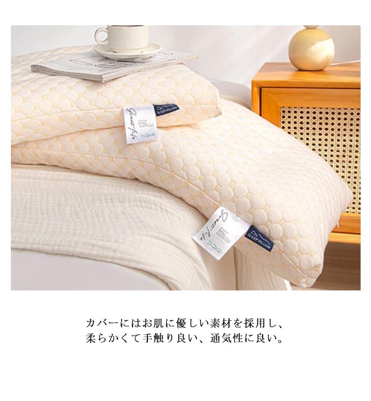頭全体を優しくサポートでき、爽やかな睡眠環境を与えられ、気持ちよく眠れます。48×74cm 40×60cm高品質のポリエステルを採用し、羽毛のような柔らかさ、フカフカで触り心地がよい。カバーにはお肌に優しい素材を採用し、柔らかくて手触り良い、通気性に良い。ストレス解消しながら呼吸をスムーズさせ、イビキ軽減などの効果も期待できます。変形しにくく、家庭用洗濯機で丸洗いができ、いつも清潔保つ。