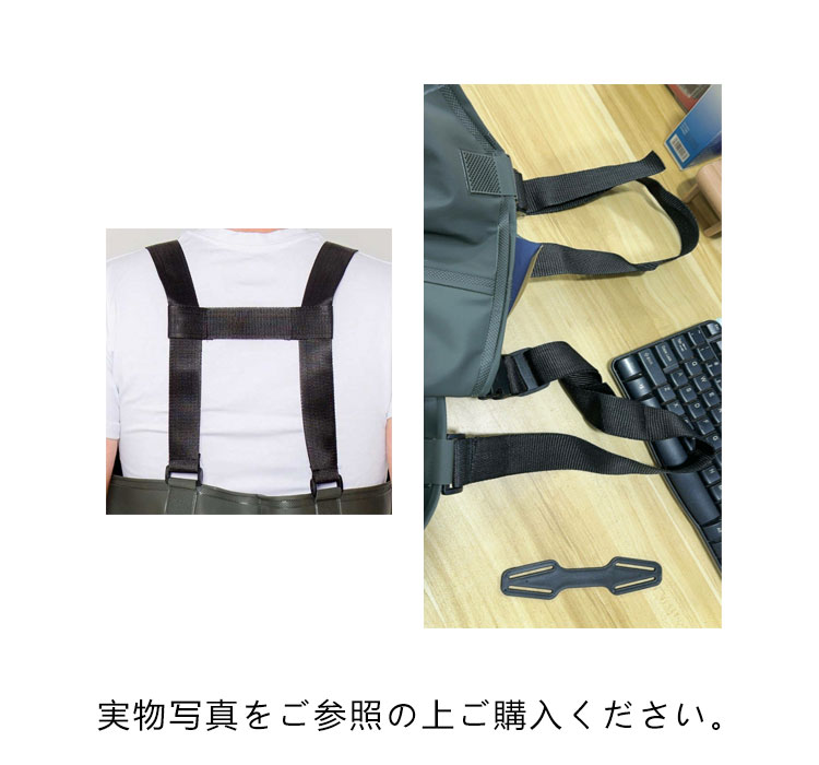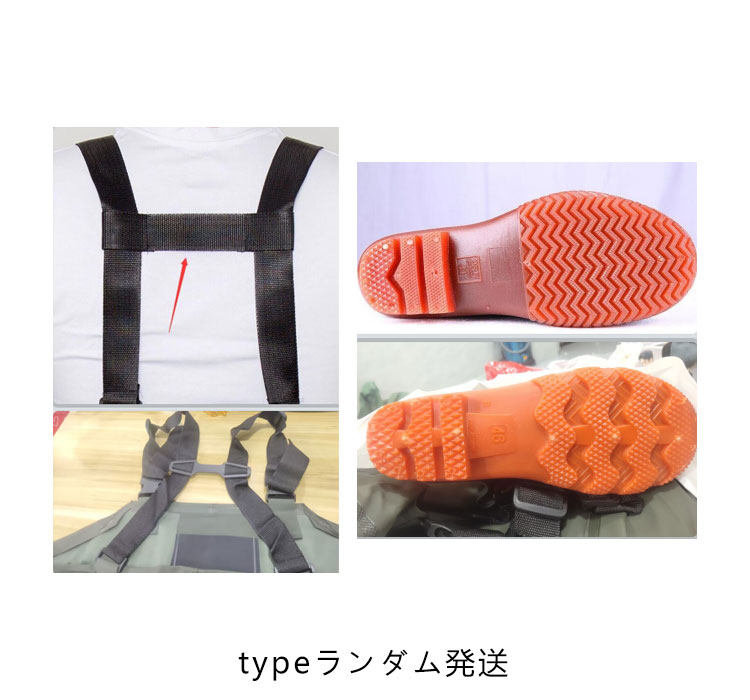 | 【ウェーダー】【12サイズ展開】【男女兼用】【胴付き長靴】 海に川に湖に!!立ち込んで釣りをするなら必須アイテムのウェーダーです☆ 胸まで完全防水なので、胸下までの水中作業?水跳ねの多い工場作業?漁業作業?農作業にも最適です? 通気性が良い生地およびPVCコーティング仕上げ、耐水性、耐酸性、耐アルカリ性といった性質を持ちます。 ちょっとした小物や鍵も入れられる、便利な胸ポケット付。 滑り止め靴底で、渓流、小池、泥沼などの中に渉っても安定的です。苔生した場所や海苔や海草のついた岩場でも滑りにくく安心。 H形のサスペンダーは調整可能で、大きいサイズもご用意しており、様々な体型にフィットします。デザインによって、ワンタッチ脱着できます。 女性も男性も着れる小さいサイズから大きいサイズまで揃った12サイズ。 土砂災害、土砂崩れ、台風、河川の氾濫、洪水など、万一の災害時の復興やボランティアの際に。防災の備えとして。 | |