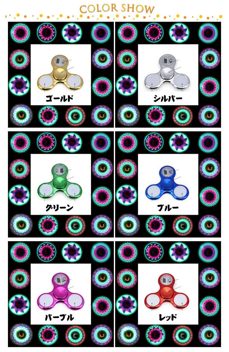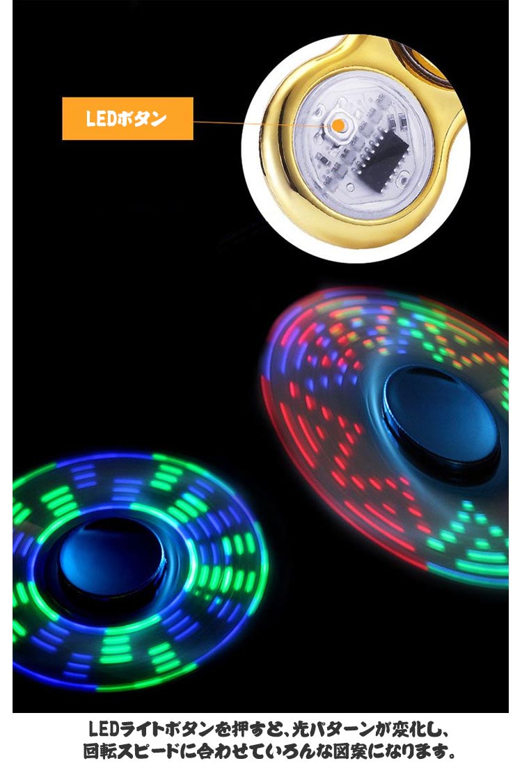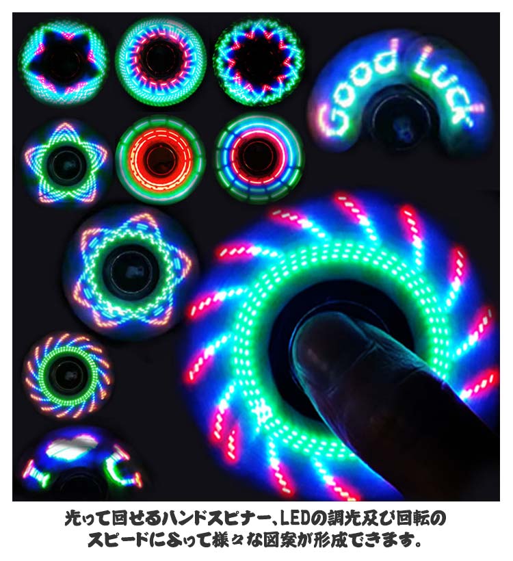 ハンドスピナー LED発光 36種類 図案 指先のコマ おしゃれ 図案形成 光る ハンド スピナー ストレス解消 送料無料 高速回転 フィンガースピナー 子供 大人 玩具 レインボー 虹色 カラフル 可愛い おもちゃ