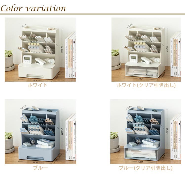 | 色 | ホワイト ホワイト(クリア引き出し) ブルー ブルー(クリア引き出し) グリーン グリーン(クリア引き出し) ピンク ピンク(クリア引き出し) ベージュ ベージュ(クリア引き出し) |