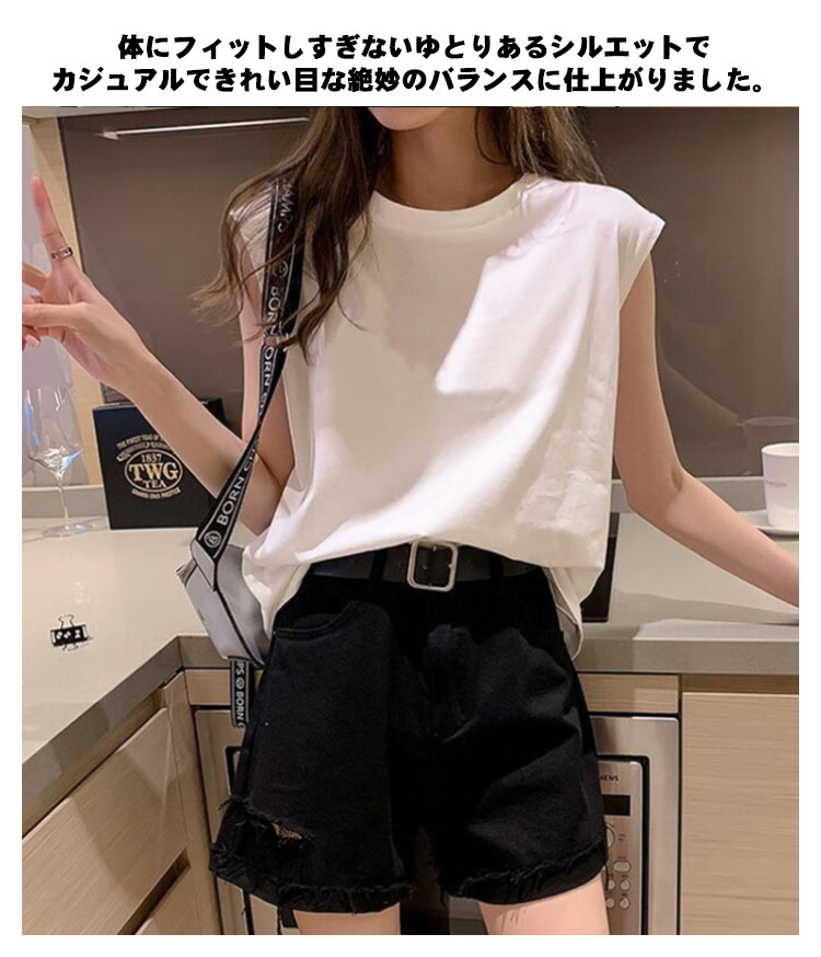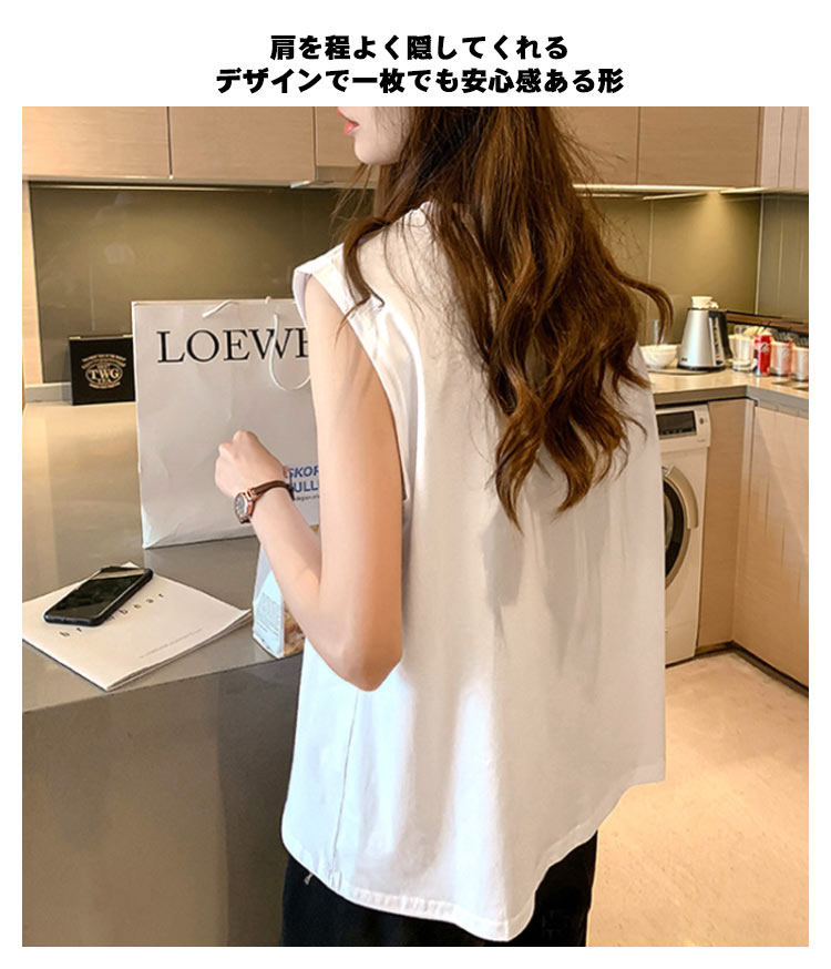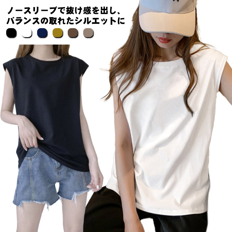 Tシャツ レディース ノースリーブ トップス カットソー タンクトップ シンプル 無地 韓国ファッション インナー クルーネック 夏服 カジュアル 春 夏 お洒落 ゆったり 大きいサイズ 送料無料