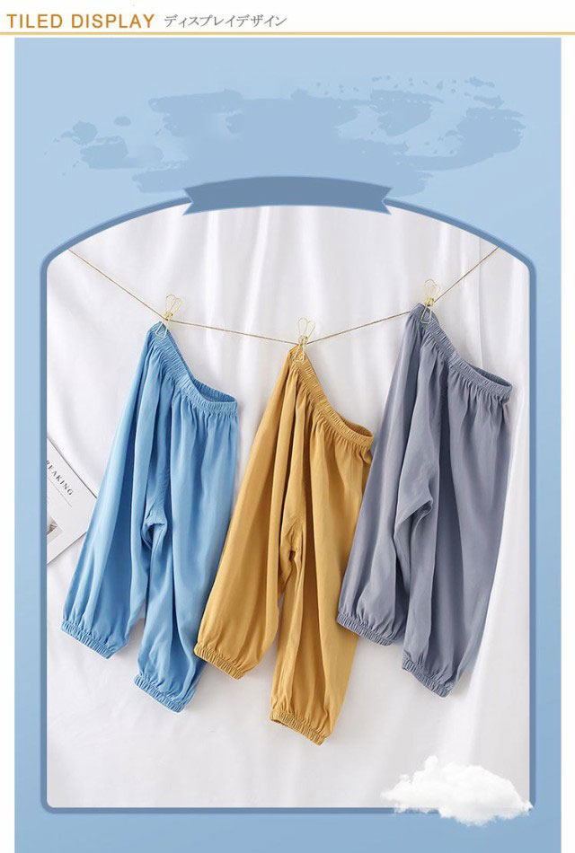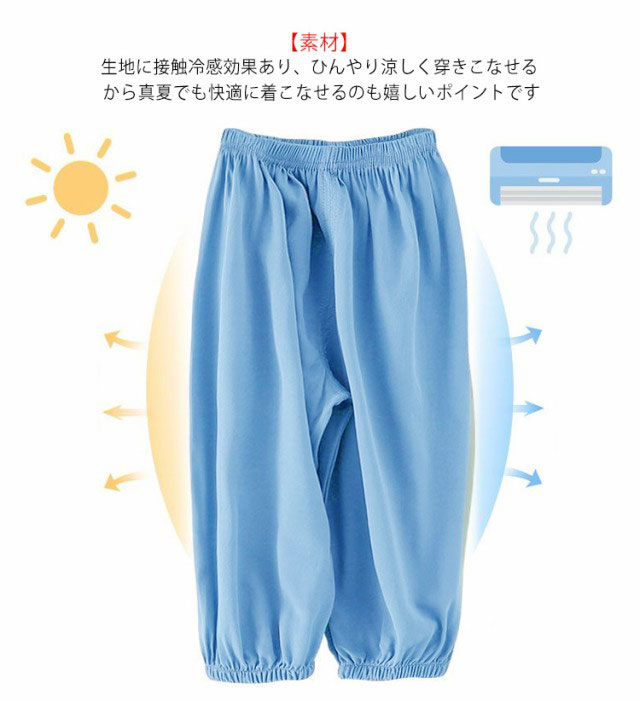 | 【夏用パンツ】今季流行のサルエルパンツのようなキッズゆったりパンツが登場! 【素材】生地に接触冷感効果あり、ひんやり涼しく穿きこなせるから真夏でも快適に着こなせるのも嬉しいポイントです。 【適用】薄手のタイプで、真夏の日焼け対策や蚊対策などにもぜひお薦めな1本です。 【仕様】ウェストと裾が柔らかいゴムで締まって、長時間着用しても窮屈さなどは一切なく楽です。 | |