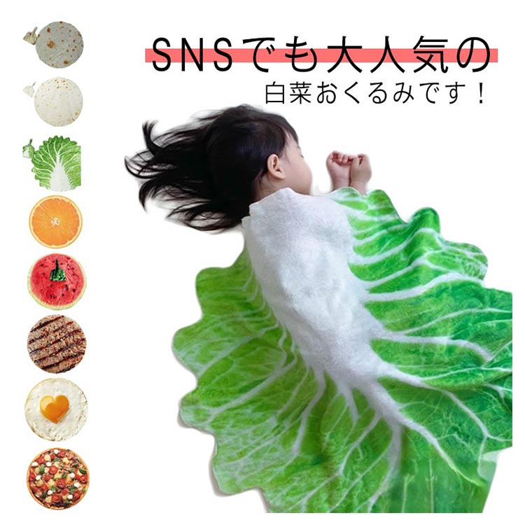 SNSでも大人気の白菜おくるみです!素材は薄手のフリース生地で手触りはふわふわです。水洗い可能です。新生児期にはおくるみに、大きくなってもブランケットとして長く使えます!ニューボーンフォト、寝相アート、お昼寝アート、写真撮影、記念写真、年賀状などにも大活躍です!出産祝い、プレゼントにも喜ばれます。