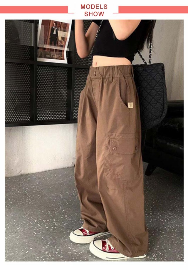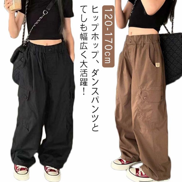 子供服 女の子 キッズ カーゴパンツ ワイドパンツ ジョガーパンツ ダンスパンツ ヒップホップ ダンス衣装 ダンスパンツ ロングパンツ カジュアル ゆったり 春 夏 通学 黒 ブラウン 120 130 140 150 160 170