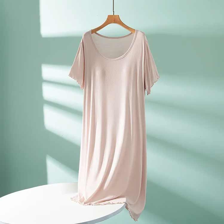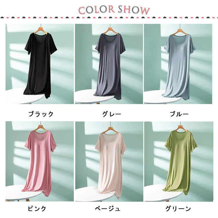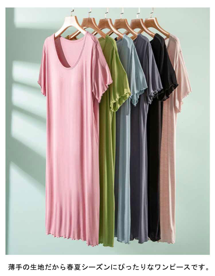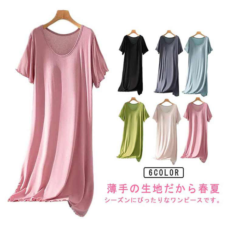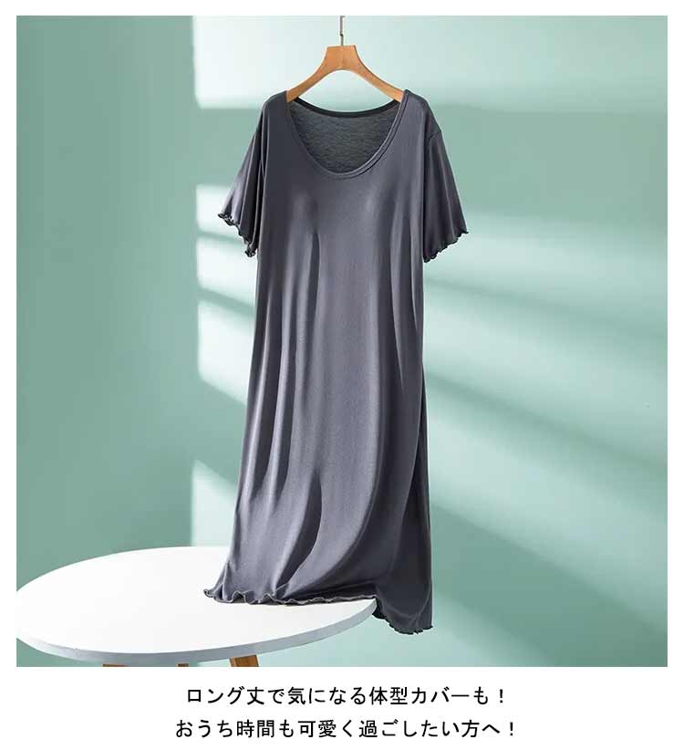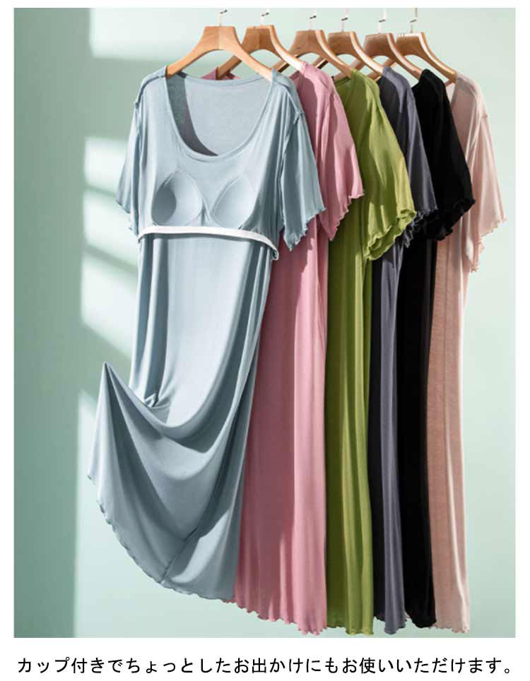 ルームウェア 部屋着 ワンピース カップ付き 半袖 ロング丈 おうち パジャマ 体型カバー シンプル 寝間着 モダール 薄手 ナイトウエア 大きいサイズ ゆったり マタニティ 春夏 送料無料
