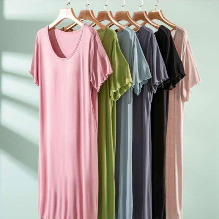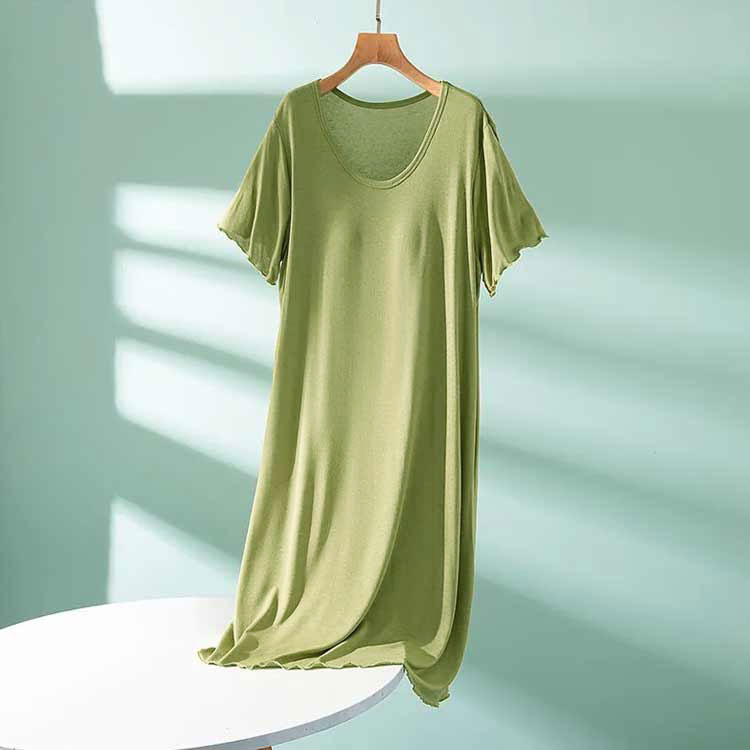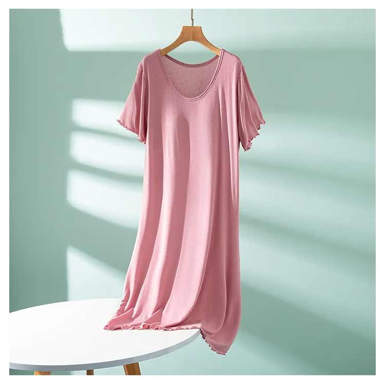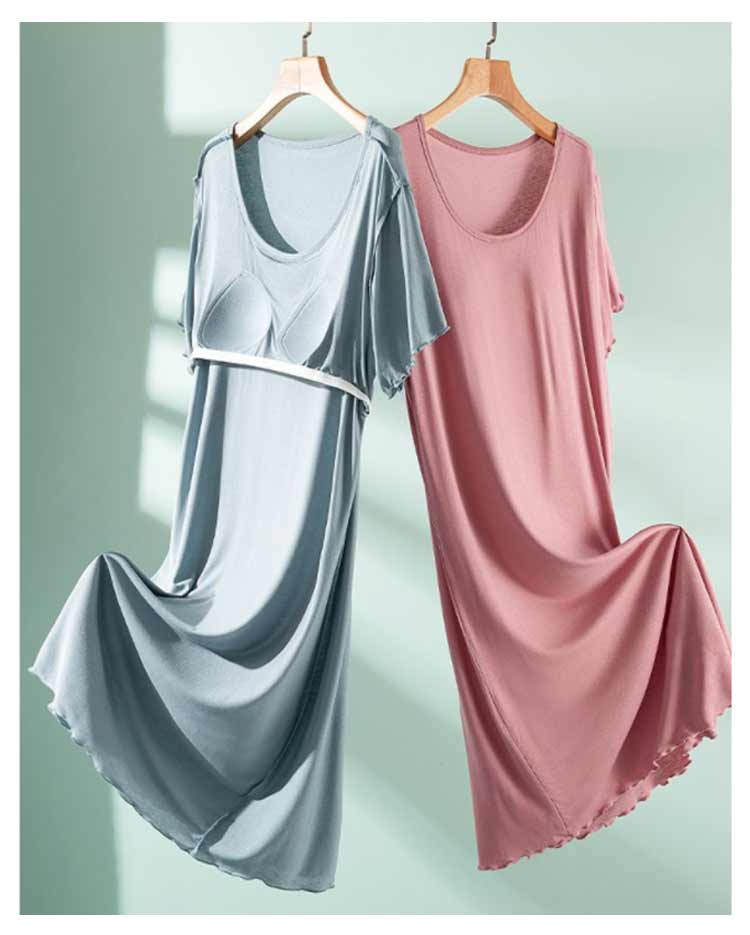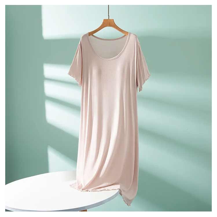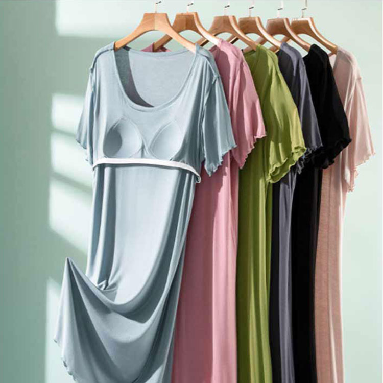 ルームウェア 部屋着 ワンピース カップ付き 半袖 ロング丈 おうち パジャマ 体型カバー シンプル 寝間着 モダール 薄手 ナイトウエア 大きいサイズ ゆったり マタニティ 春夏 送料無料