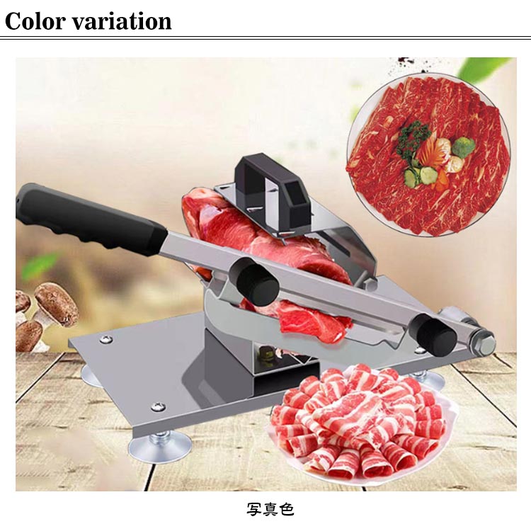 | 【手動式 ミートスライサー】【替え刃付き】 生ハム、冷凍肉などを薄切り可能な手動式のミートスライサー。 304ステンレス鋼の刃を採用しているので、衛生的で安心して食材をスライスできます。 【異なる厚さの肉をカット】ノブを少し回すだけで、肉の厚さを0.3mmから8mmまで調整できます。 吸盤付きスタンド/切断時の横転防止の為、強力な吸盤脚となっております。台がしっかり固定できるから作業も安心 丸洗い可能/ステンレス素材の為、錆びにくくシンプルな設計により丸洗い可能 冷凍の牛肉、肉、子羊肉、ハム、野菜をすばやくスライスして、鍋、サンドイッチ、ピザ、前菜を作るのに役立ちます。 人間工学に基づいたハンドルを備えた冷凍肉カッターは、滑らかな表面と快適な体験を提供します. | |