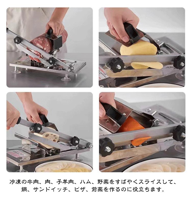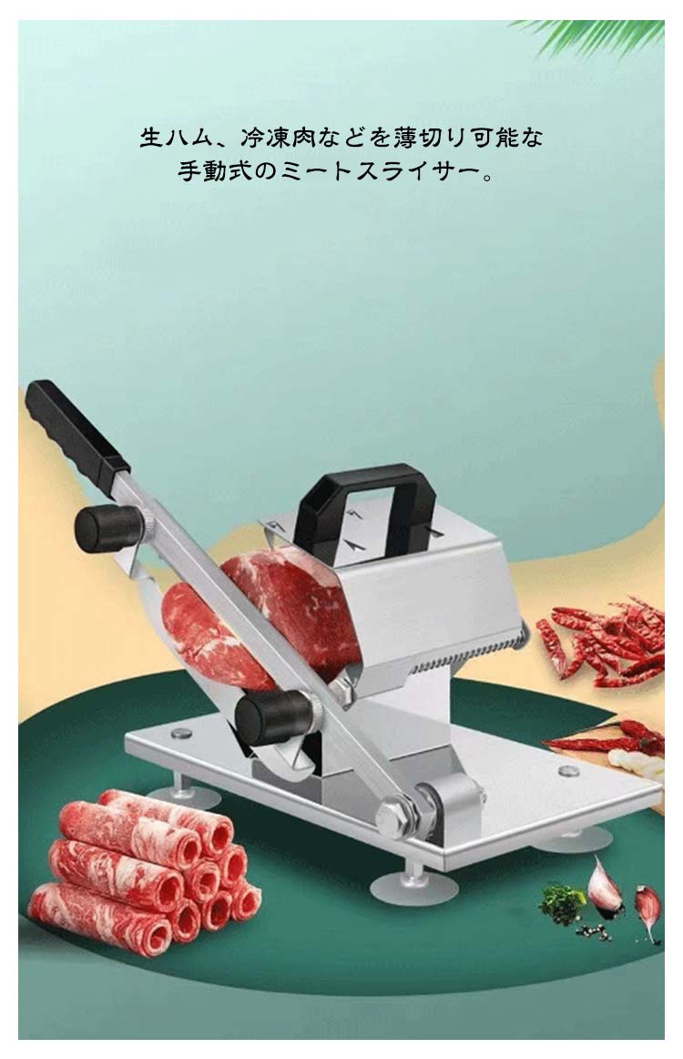 【替え刃1枚付き】ミートスライサー 手動式 スライサー フードスライサー 押切り 押切包丁 カッター 野菜切り 家庭用 居酒屋用 生ハム 冷凍肉 しゃぶしゃぶ肉 業務用 肉スライサー 肉切機 薄切り ステンレス 手動冷凍肉カッター