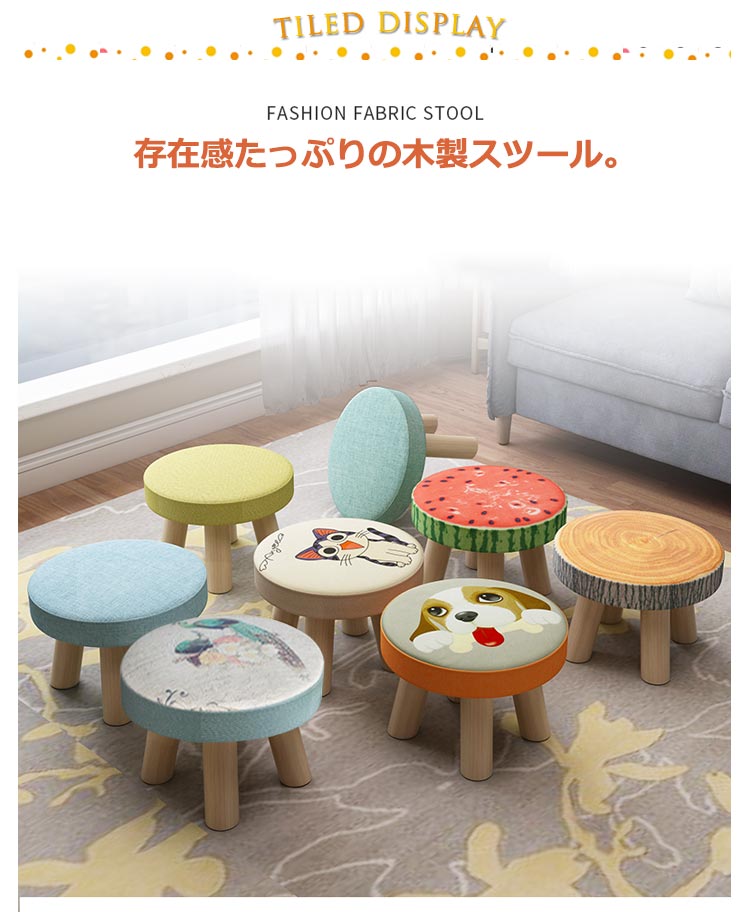 2個セット キッズチェア ロータイプ 子供スツール 木製 丸 スツール 子供用イス いす 椅子 丸形 円形 ウッドスツール 低い椅子 カバー洗える ミニスツール 丸椅子 可愛い 玄関椅子 腰掛け 幼児 ミニスツール ローチェア リビング 寝室 玄関 保育園 幼稚園