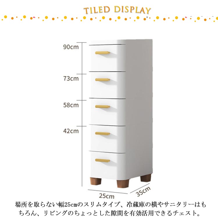隙間収納 チェスト 幅25cm スリム 5段 スキマ スリムストッカー キッチンストッカー 収納ケース すき間 衣類収納 子供 タンス ランドリー リビングチェスト ストレージ 洗面所 キッチンワゴン 引き出し 小物収納 タオル