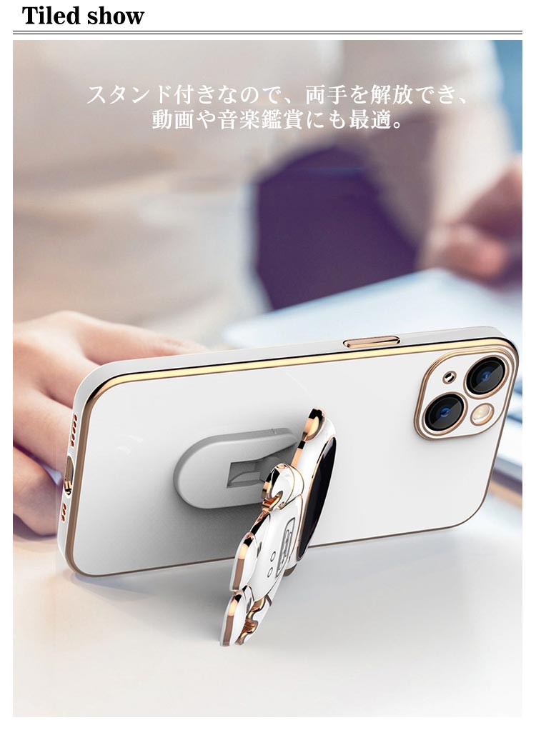 スタンド付きの宇宙飛行士iPhoneケースケース全体がスマホをしっかりと包み込み、持ち心地が抜群スマホ画面とカメラのレンズに全方位保護を提供する衝撃吸収により、意外な落下、衝撃から携帯を守るスタンド付きなので、両手を解放でき、動画や音楽鑑賞にも最適ケース本体はカメラレンズカバー付き、カメラレンズを効果的に保護するケースを装着したまま、電源ボタン、音量ボタン、コネクター等の機能が自由に使える
