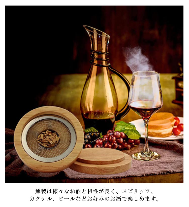 10点セットウィスキー愛好家への贈り物燻製は様々なお酒と相性が良く、スピリッツ、カクテル、ビールなどお好みのお酒で楽しめます。持ち運びが簡単で、キッチン、バー、ピクニック、釣りなどの屋外での使用に最適です。高級感のあるユニークなスモーカーは、お酒好きの方のプレゼントとしても喜ばれること間違いなしのアイテムです。カクテルスモークセットには、スモーキーカクテルウッドリッド1個、スプーン1個、5種類の木製チップ、ウイスキーの煙を掃除するための小さなブラシとフィルターが含まれています。カクテル喫煙だけではありません。 冷たい飲み物や食べ物を、ワイン、肉、チーズ、コーヒー、塩、アイスクリームなどに。