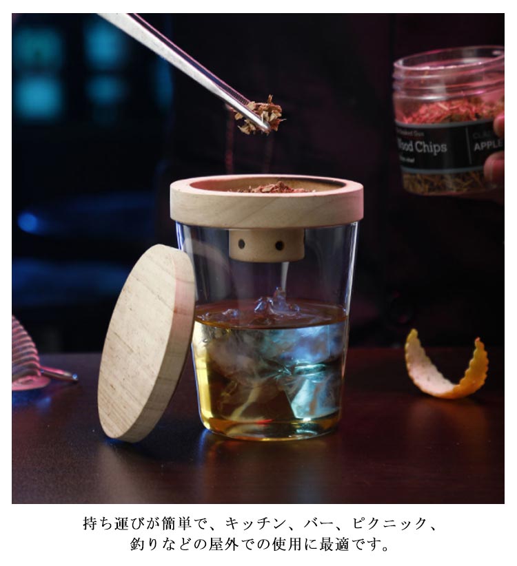 | 10点セット ウィスキー愛好家への贈り物 燻製は様々なお酒と相性が良く、スピリッツ、カクテル、ビールなどお好みのお酒で楽しめます。 持ち運びが簡単で、キッチン、バー、ピクニック、釣りなどの屋外での使用に最適です。 高級感のあるユニークなスモーカーは、お酒好きの方のプレゼントとしても喜ばれること間違いなしのアイテムです。 カクテルスモークセットには、スモーキーカクテルウッドリッド1個、スプーン1個、5種類の木製チップ、ウイスキーの煙を掃除するための小さなブラシとフィルターが含まれています。 カクテル喫煙だけではありません。 冷たい飲み物や食べ物を、ワイン、肉、チーズ、コーヒー、塩、アイスクリームなどに。 | |