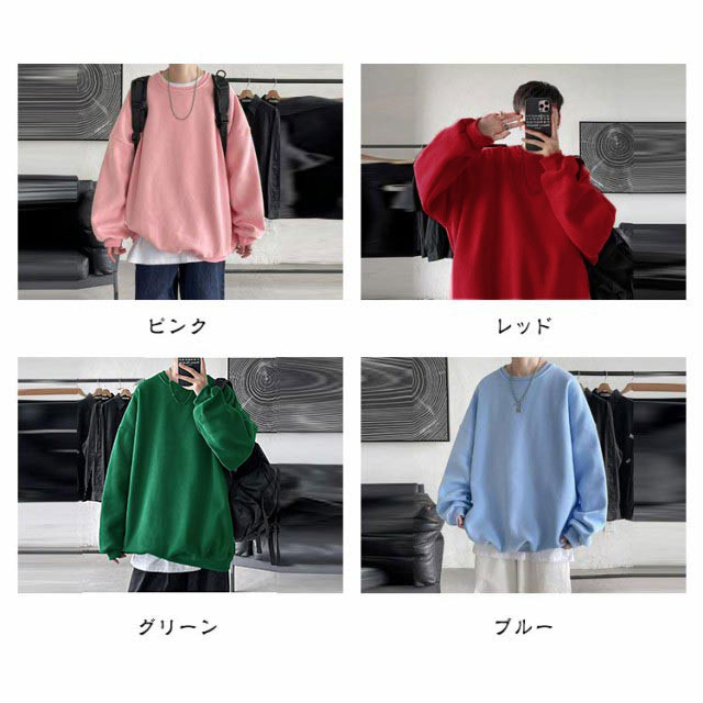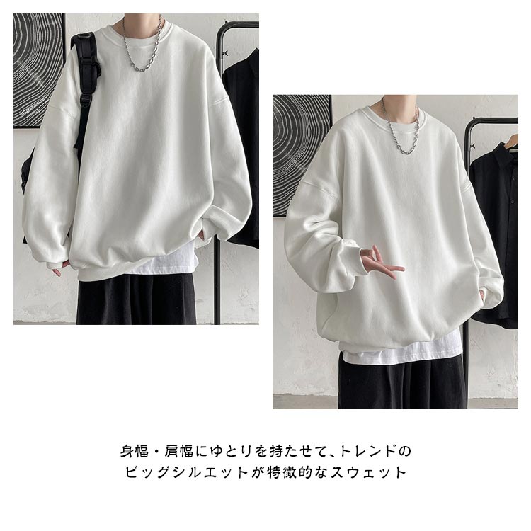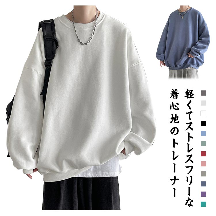 トレーナー メンズ ビッグシルエット オーバーサイズ スウェット トレーナー クルーネック 長袖 トップス ユニセックス カジュアル ゆったり 大きいサイズ おしゃれ メンズ トレーナー 無地 シンプル スエット 部屋着 ストリート 送料無料
