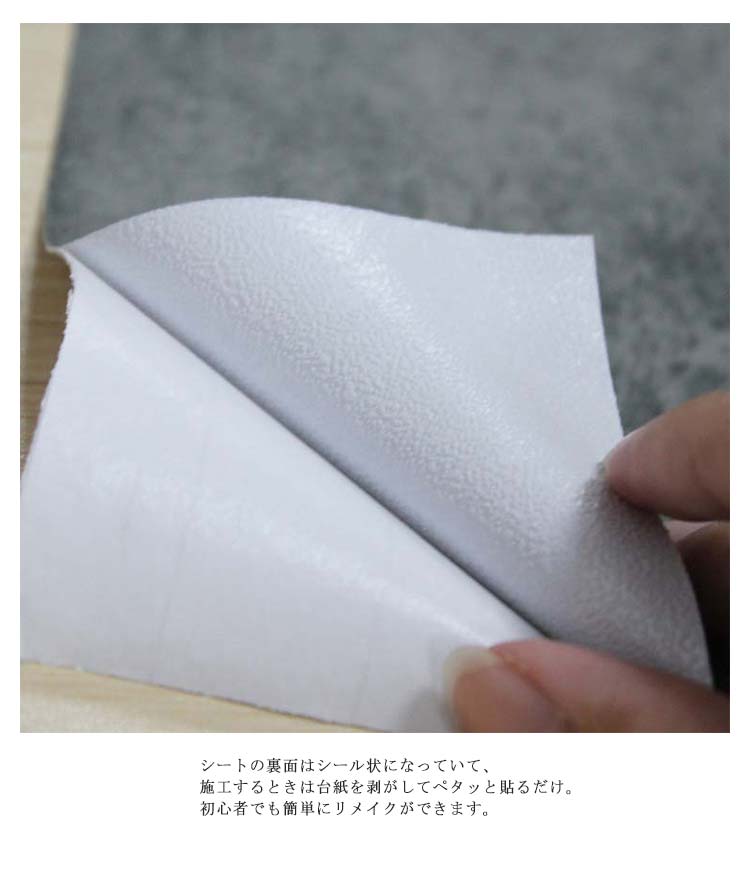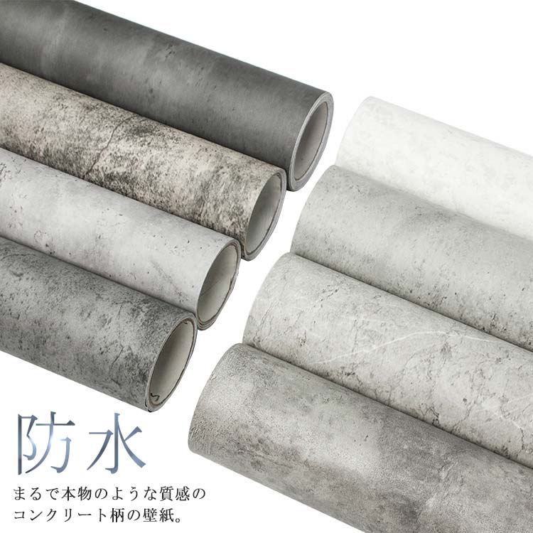 | まるで本物のような質感のコンクリート柄の壁紙。 シートの裏面はシール状になっていて、施工するときは台紙を剥がしてペタッと貼るだけ。初心者でも簡単にリメイクができます。 PVC素材なので水に強く、テーブルやキッチン周り、浴室など、水濡れが気になる場所でもお使いいただけます。水拭きできるので、お手入れも簡単です。 はがせる壁紙なので賃貸でもOK! | |