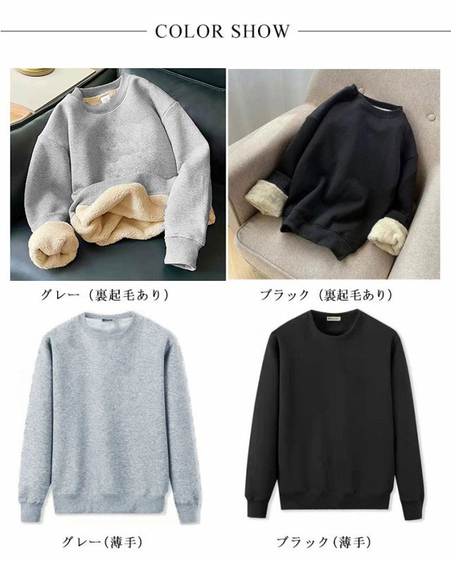 | 色 | ブラック(薄手) グレー(薄手) ブラック(裏起毛あり) グレー(裏起毛あり) |