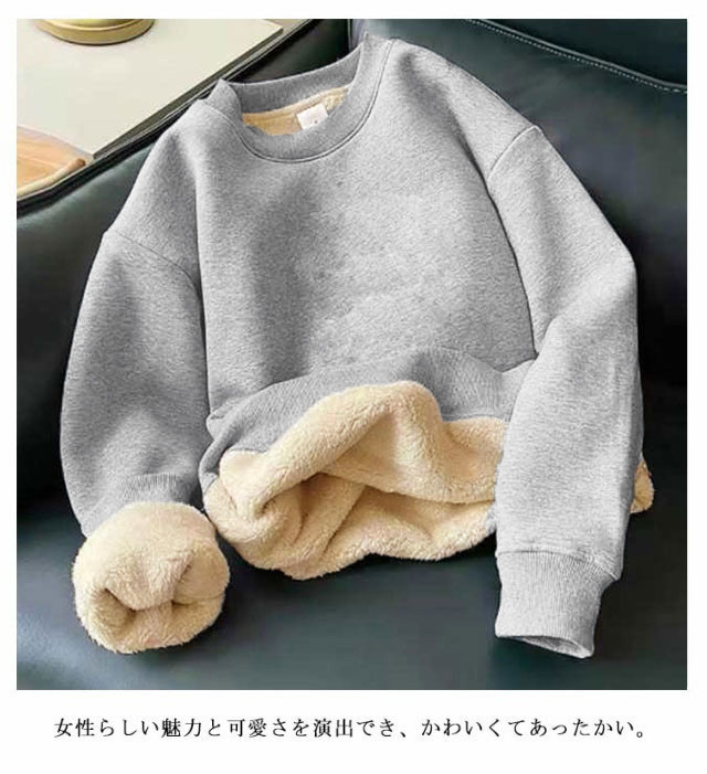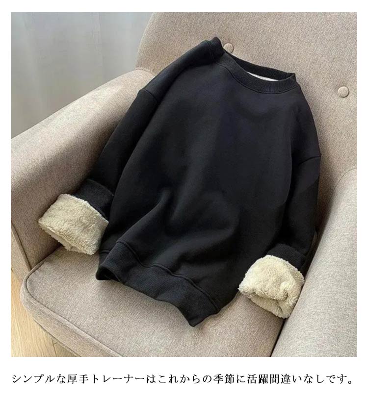 スウェットプルオーバー トレーナー クルーネック 厚手 裏起毛 あったか レディース メンズ トップス 無地 長袖 パーカー カジュアル ゆったり 春 秋冬 裏ボア 送料無料