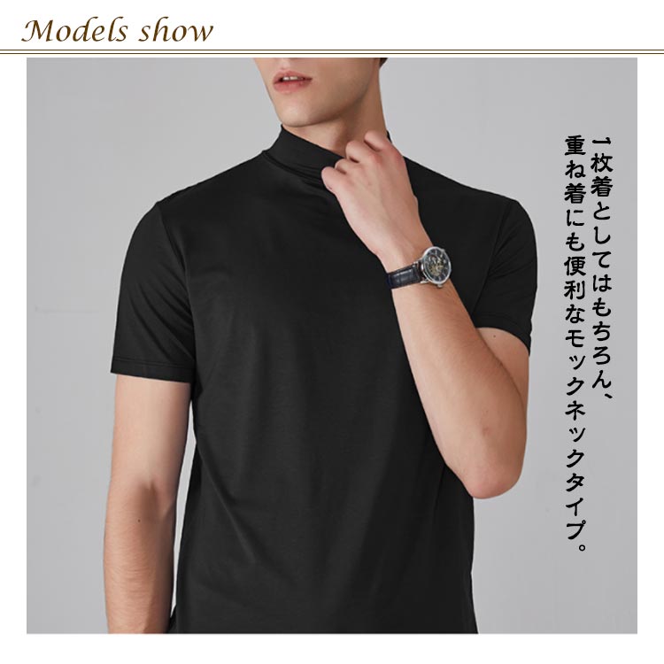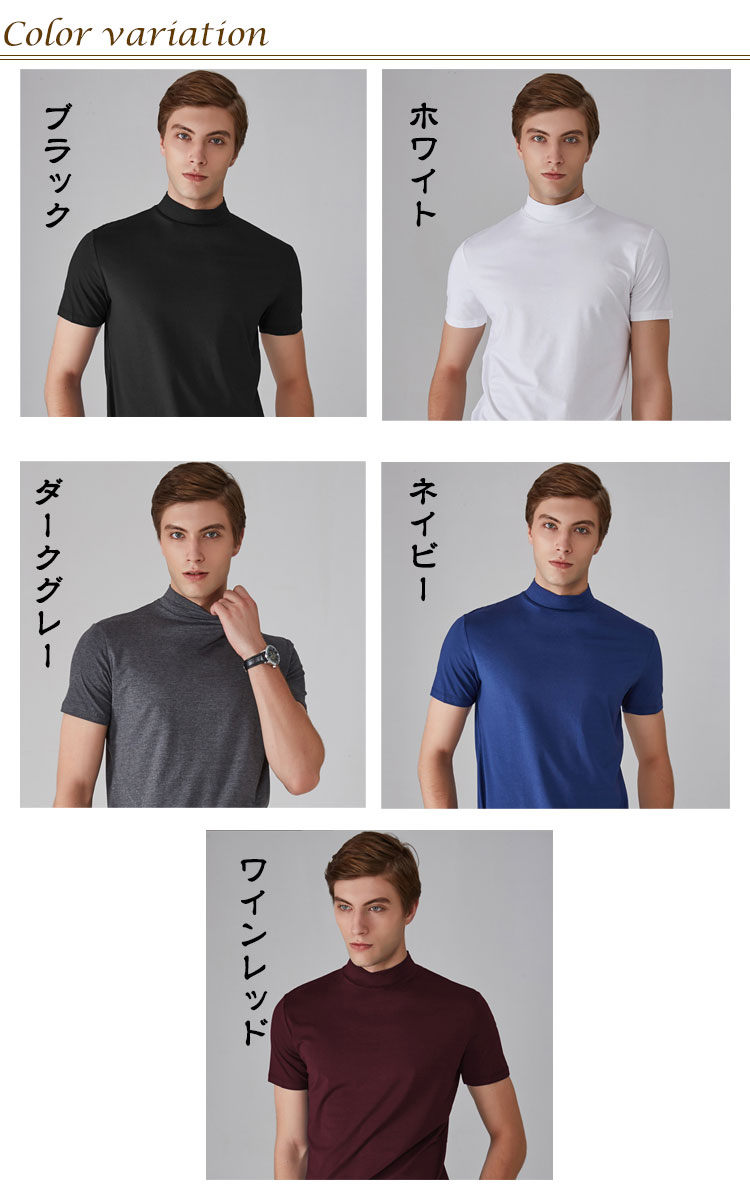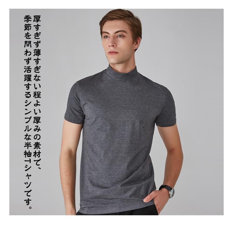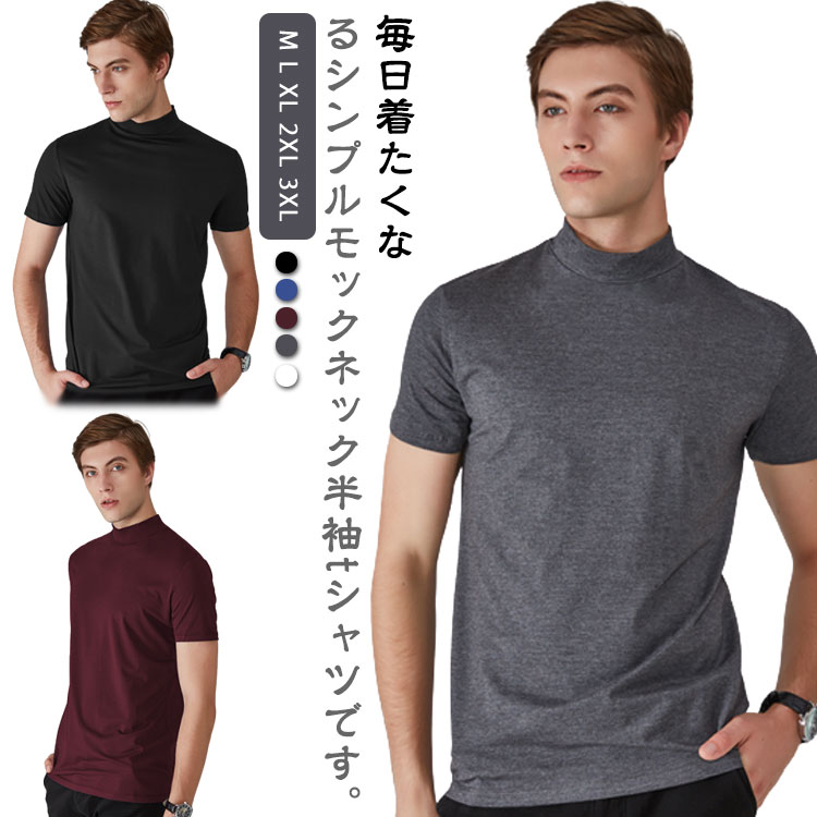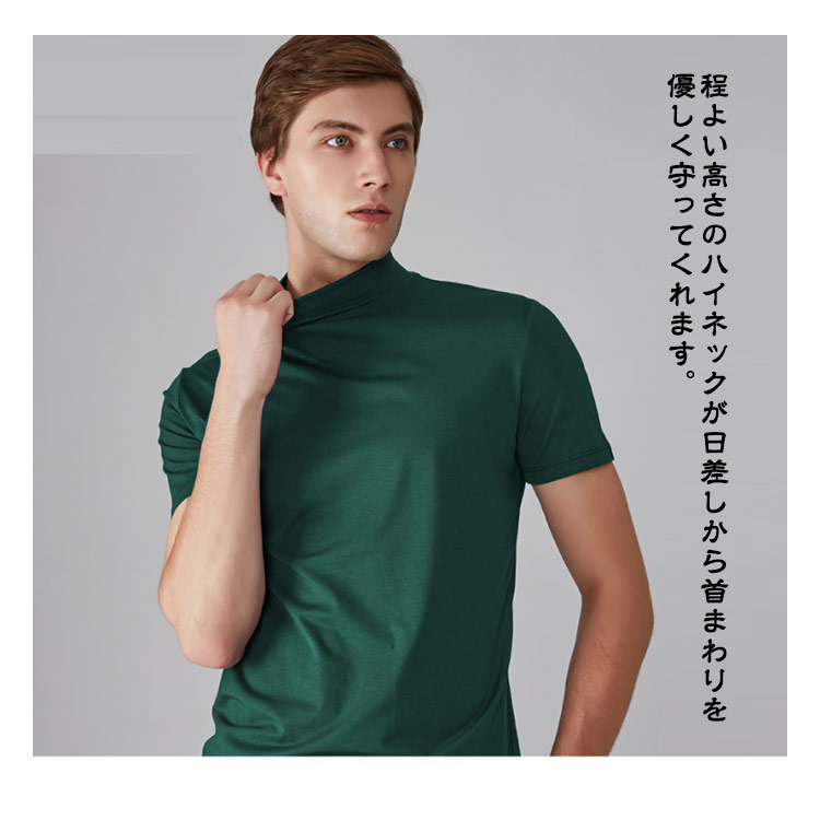 ハイネック tシャツ メンズ 半袖 tシャツ 無地 カットソー 夏 モックネック tシャツ ティーシャツ ゴルフtシャツ ゴルフウェア カジュアル シンプル ビジネス オフィス 普段着 夏 夏服 送料無料