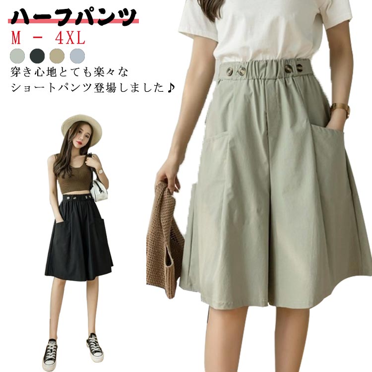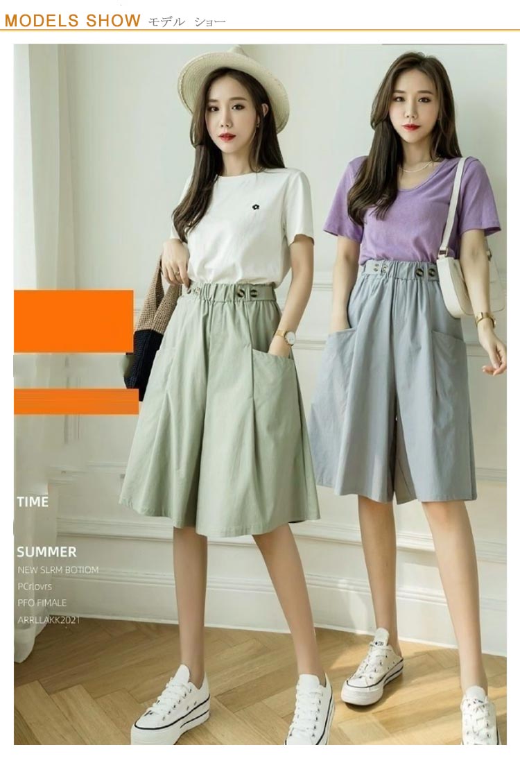 ハーフパンツ レディース スカート風 ショートパンツ カジュアルパンツ 短パン 薄手 涼しい 五分丈 キュロットパンツ スカーチョ ボトムス aライン ハイウエスト 美脚 脚長 ウエストゴム 通勤 通学 カジュアル キレイめ 大きいサイズ プレゼント ギフト 送料無料