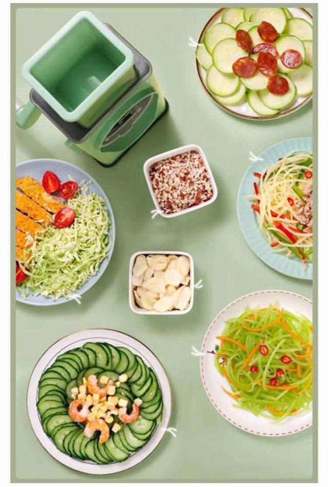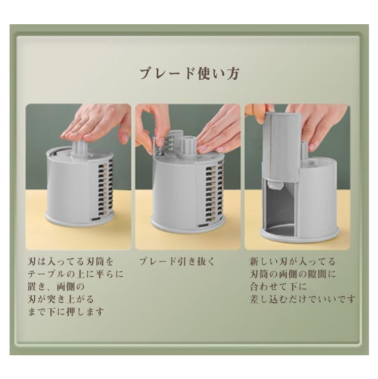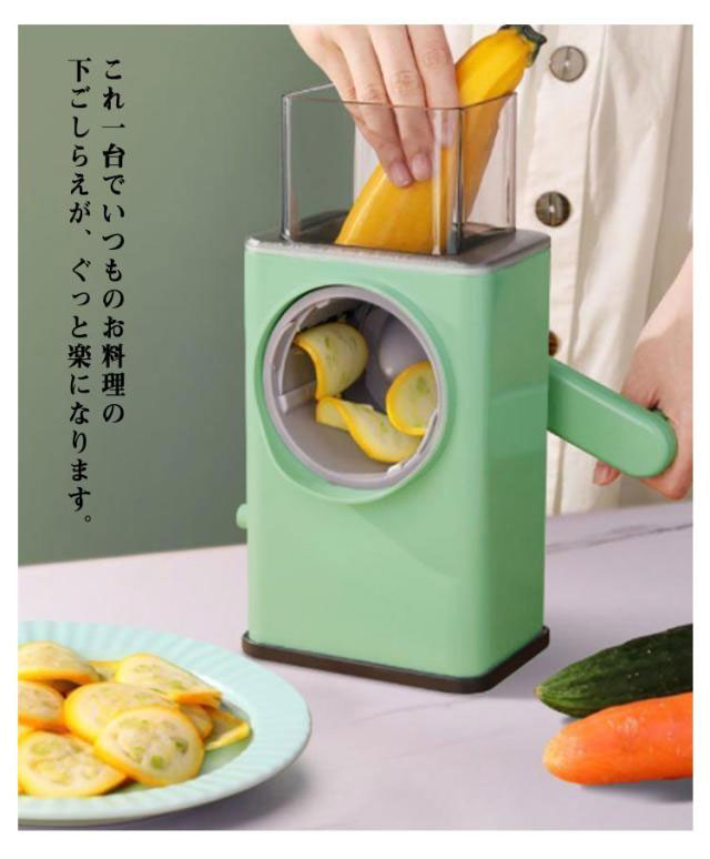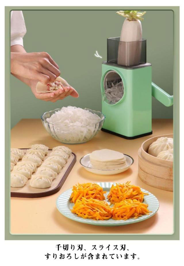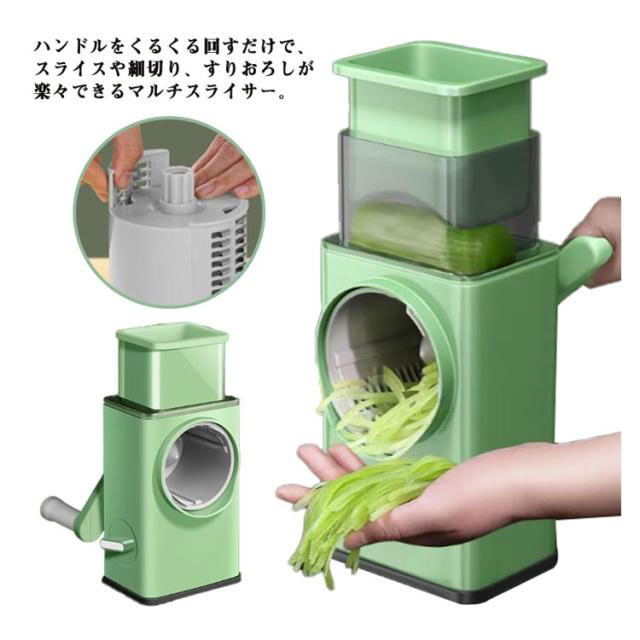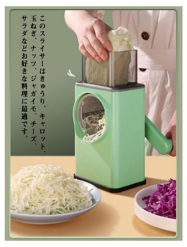 多機能野菜スライサー スライサー セット 千切り 細切り おろし 手回し式 回転式 万能スライサー 多機能 6種類ブレード チョッパー フードカッター 便利グッズ 回すだけ お手軽 簡単調理 お手入れ簡単 家庭用 洗いやすい