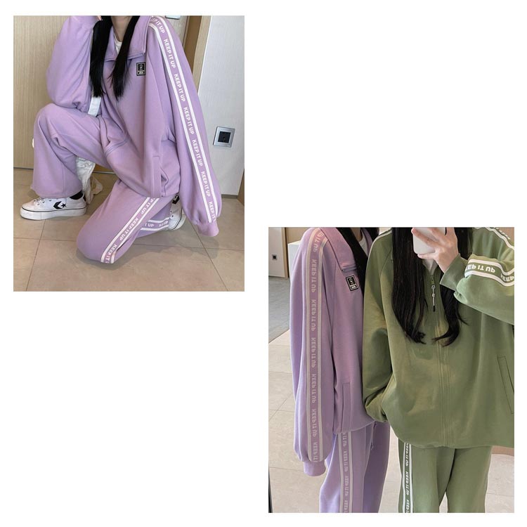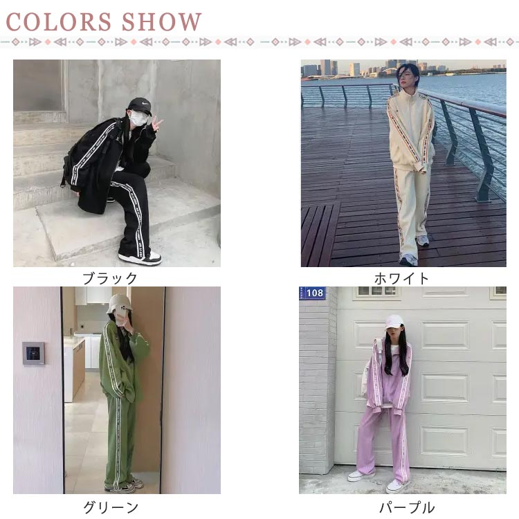 | 春秋にピッタリなジャージ上下セットです。 ゆるっとこなれ感のあるジップアップのトップス。ヒップがすっぽり隠れる長めの着丈。英字ゴのあるサイドラインがスタイリッシュなアクセントに。スポーティースタイルにもカジュアルスタイルにもあわせやすい。ジャージズボンとジップアップジャケットとして別々に使用も可能。上下にもポケット付きで便利! | |
