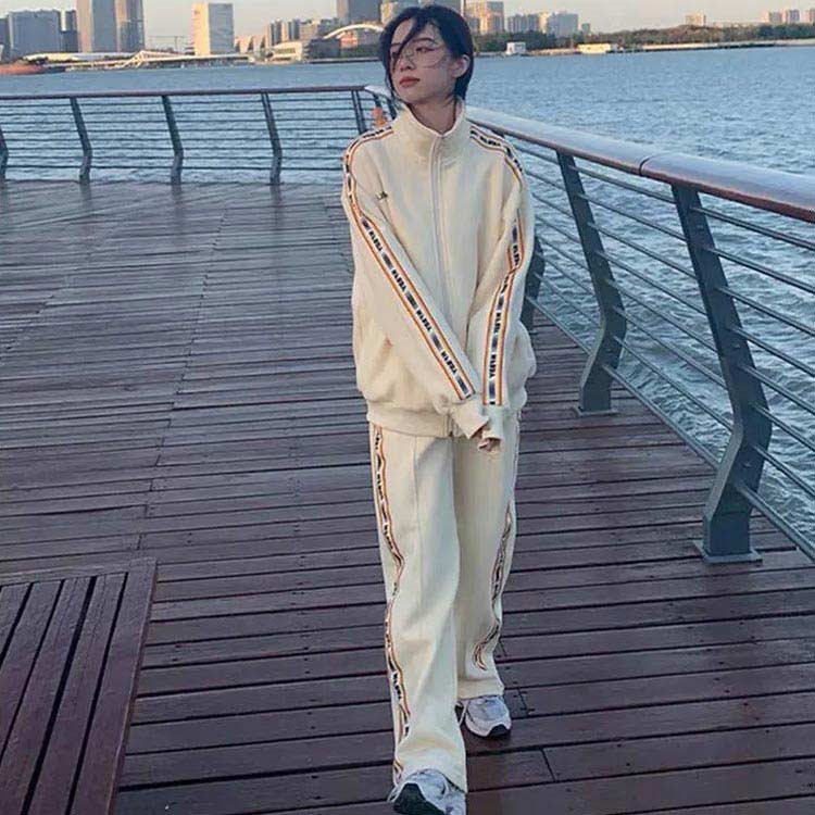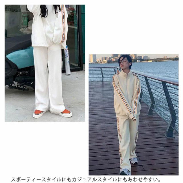 ジャージ レディース 上下セット 全4色 S-2XL スポーツウェア 春 秋 カジュアル おしゃれ シンプル ゆったり 大きいサイズ 長袖 ジャケット パンツ 2点セット サイドライン ジップアップ 運動着 大人用 トレーニングウェア 送料無料
