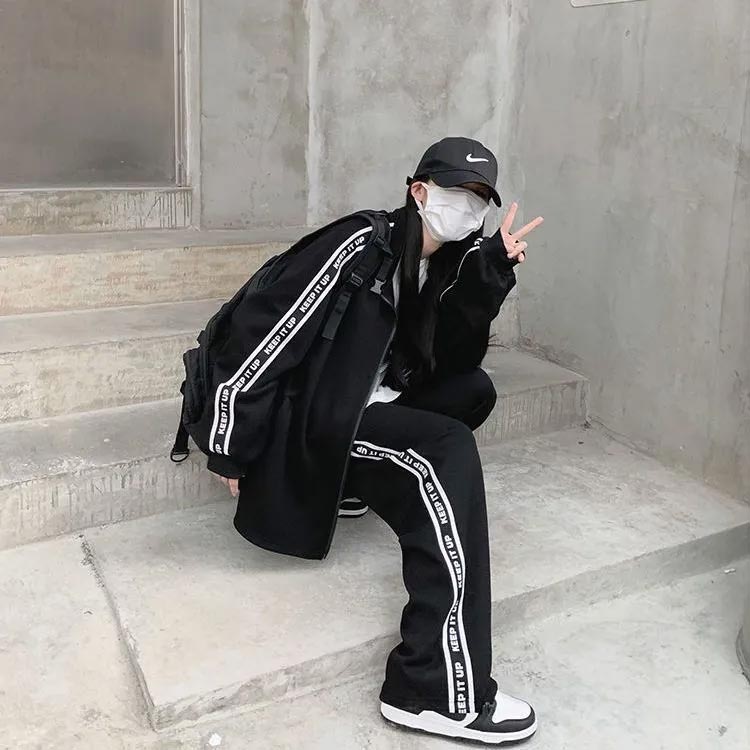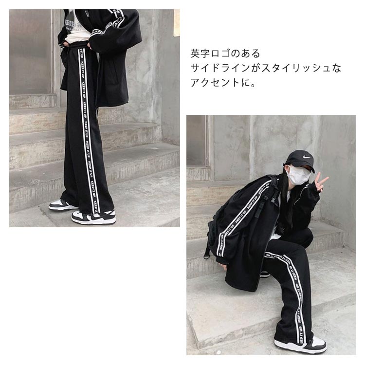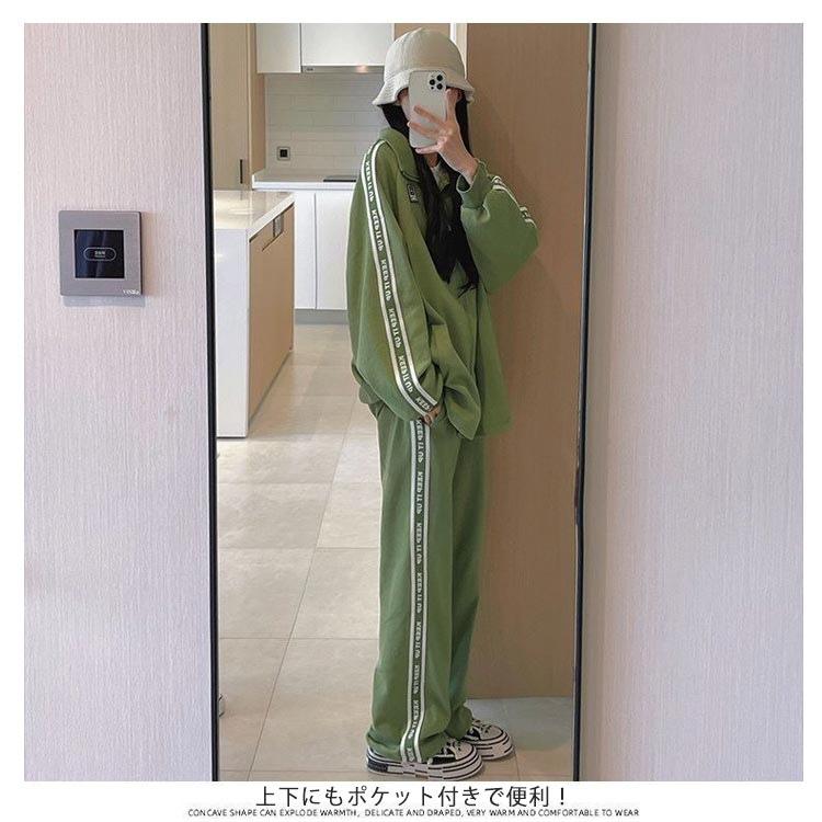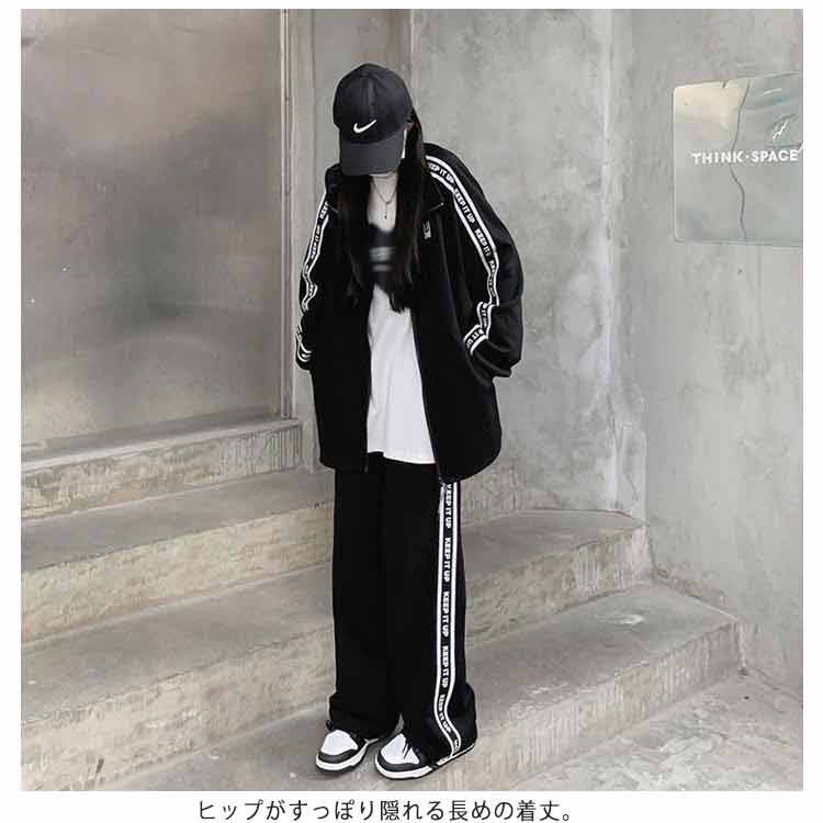 春秋にピッタリなジャージ上下セットです。 ゆるっとこなれ感のあるジップアップのトップス。ヒップがすっぽり隠れる長めの着丈。英字ゴのあるサイドラインがスタイリッシュなアクセントに。スポーティースタイルにもカジュアルスタイルにもあわせやすい。ジャージズボンとジップアップジャケットとして別々に使用も可能。上下にもポケット付きで便利!