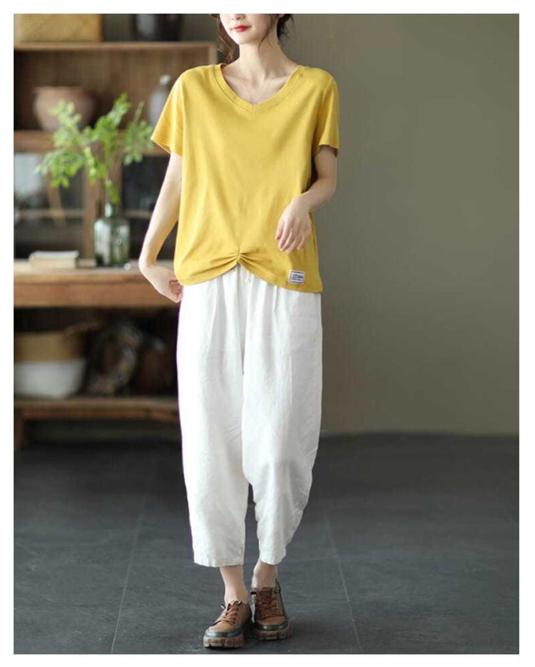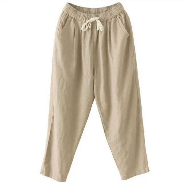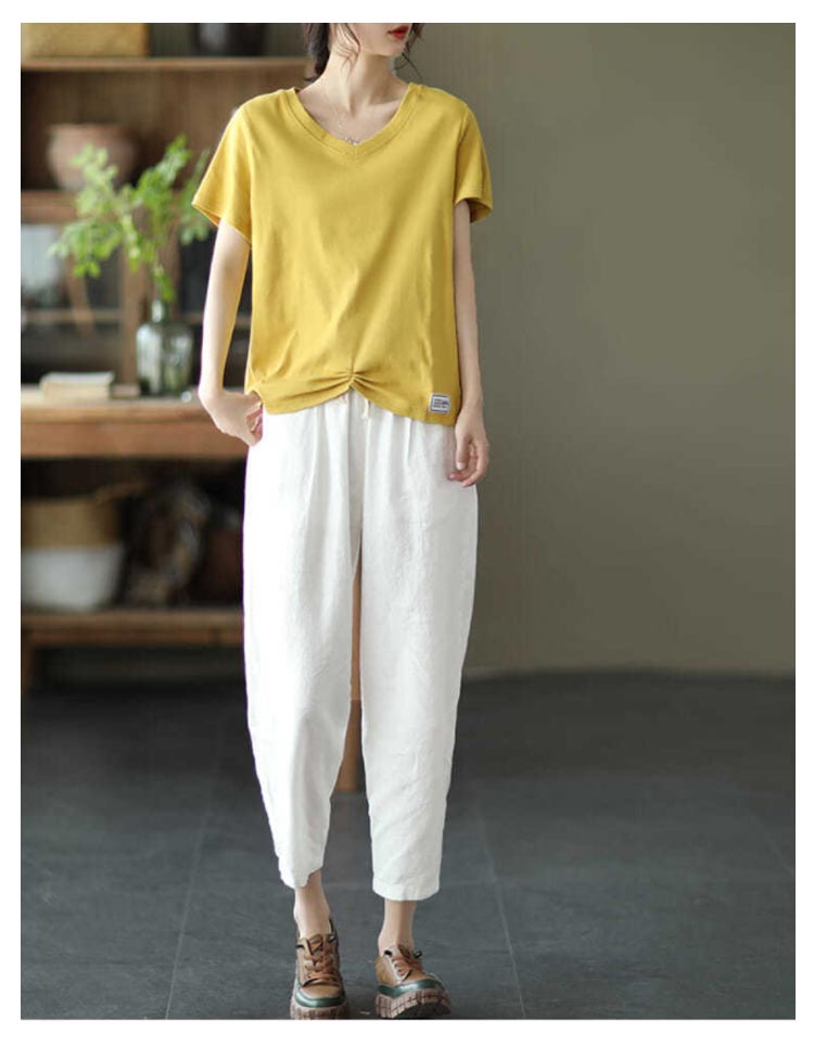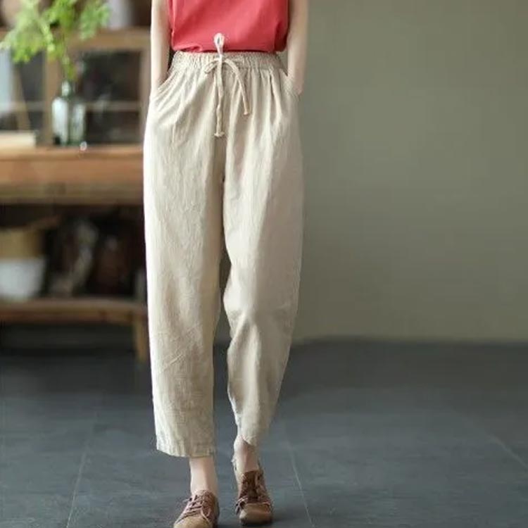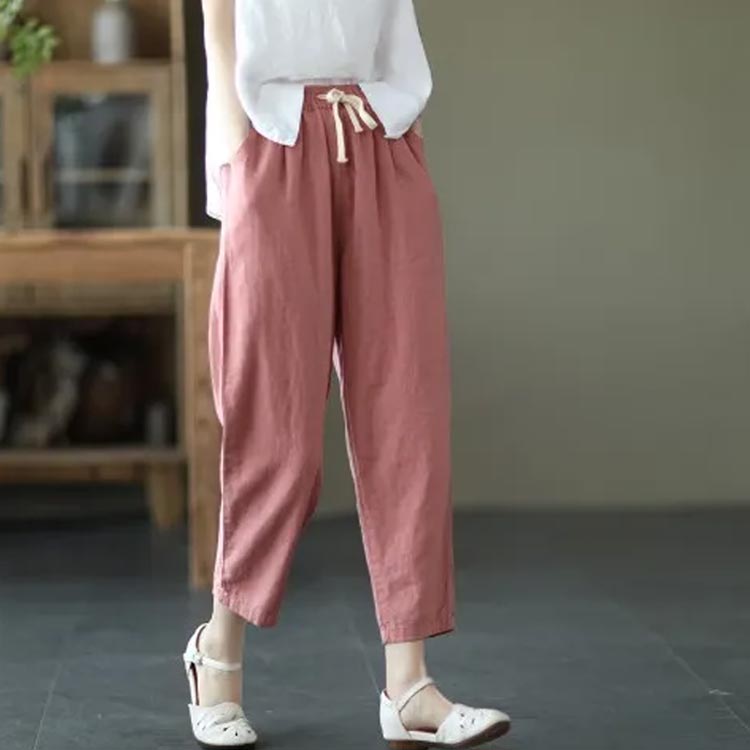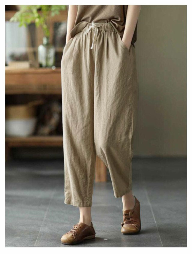 全9色×6サイズ!春夏のコーデに活躍できる涼しげな綿イージーパンツ。豊富なカラバリ展開で色違い揃いにもオススメです。清涼感あり、薄い素材タイプ、夏の間も着用ができるほど薄手で肌触り。足首をすっきり見せるやや短めの九分丈です。 ウエスト部にゴムが入り、穿き脱ぎしやすいです。 森ガールのナチュラルな風合いと生地もストレスフリー。シンプル無地デザインだからどんなトップスとも好相性◎