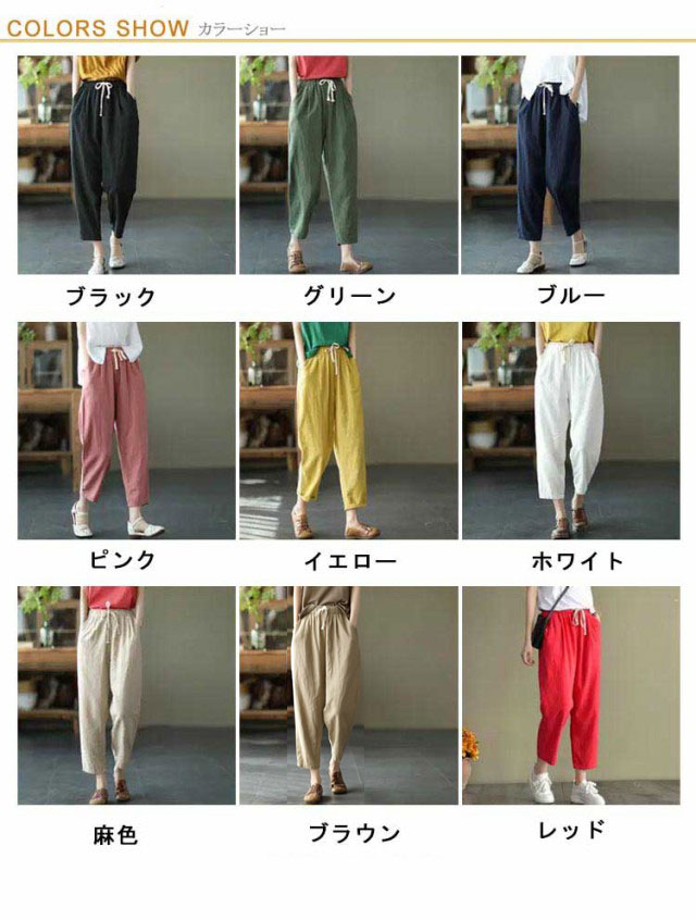 全9色×6サイズ!レディース パンツ 9分丈 サルエルパンツ 送料無料 ボトムス ワイド 無地 綿パンツ 夏服 春夏 ロング丈 美脚 ボトムス おしゃれ 着やせ リラックス ゆったり ウエストゴム おしゃれ サルエル ナチュラル 30代 20代 40代
