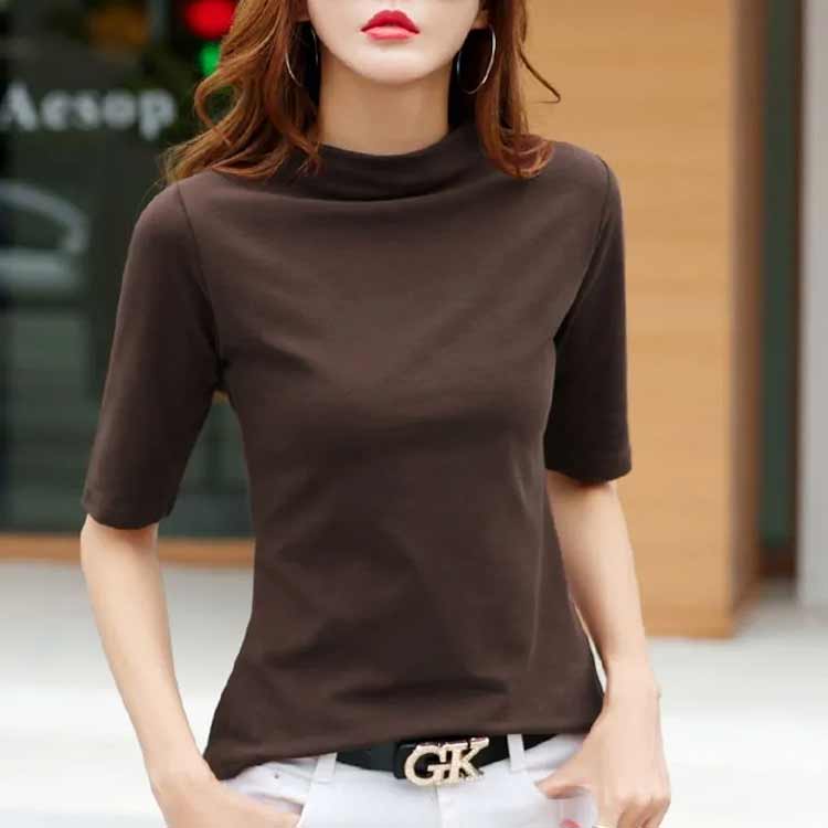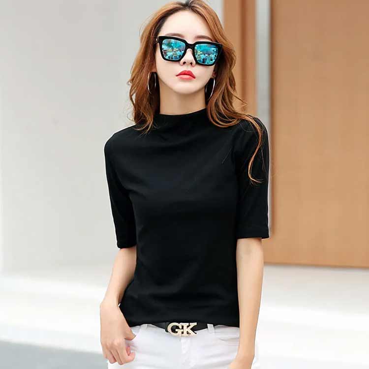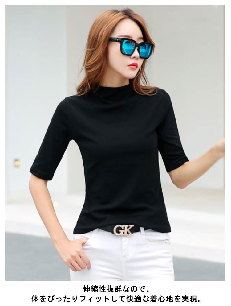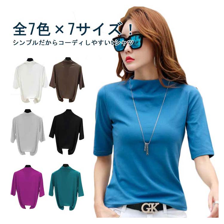 カットソー レディース ハイネック 半袖 タートルネック 紫外線対策 UVカット tシャツ 五分袖 半袖 柔らかい 薄手 快適 半袖Tシャツ ボトルネック 春夏 秋冬 日焼け対策 重ね着 無地 シンプル 母の日 大きいサイズ ギフト プレゼント 送料無料