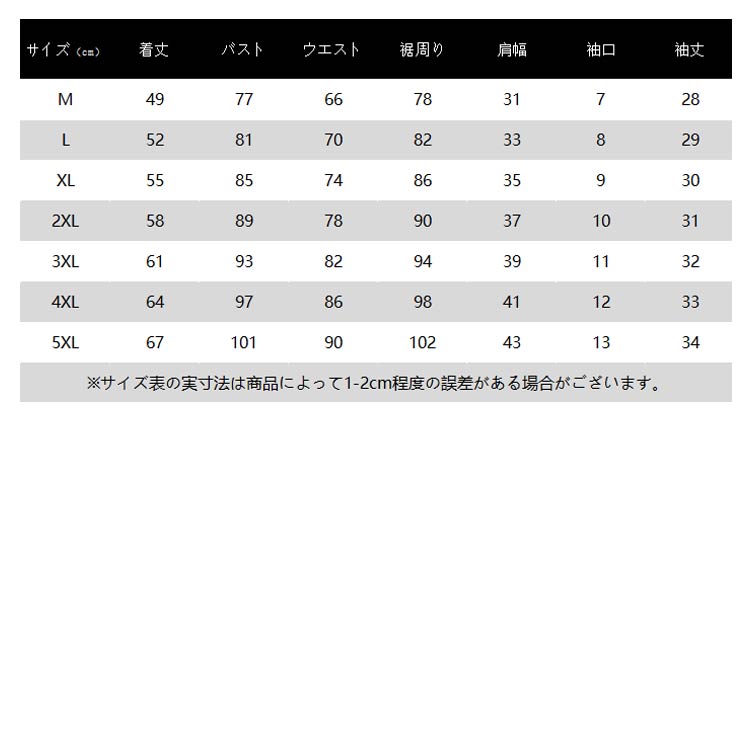 | サイズ | M L XL 2XL 3XL 4XL 5XL |