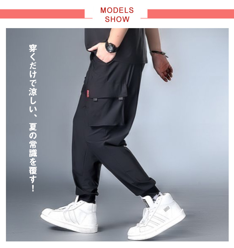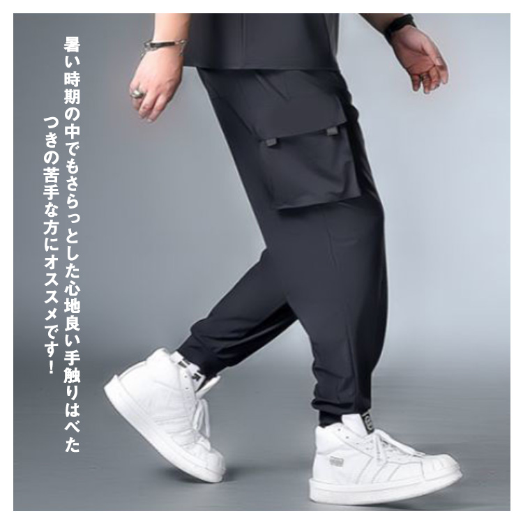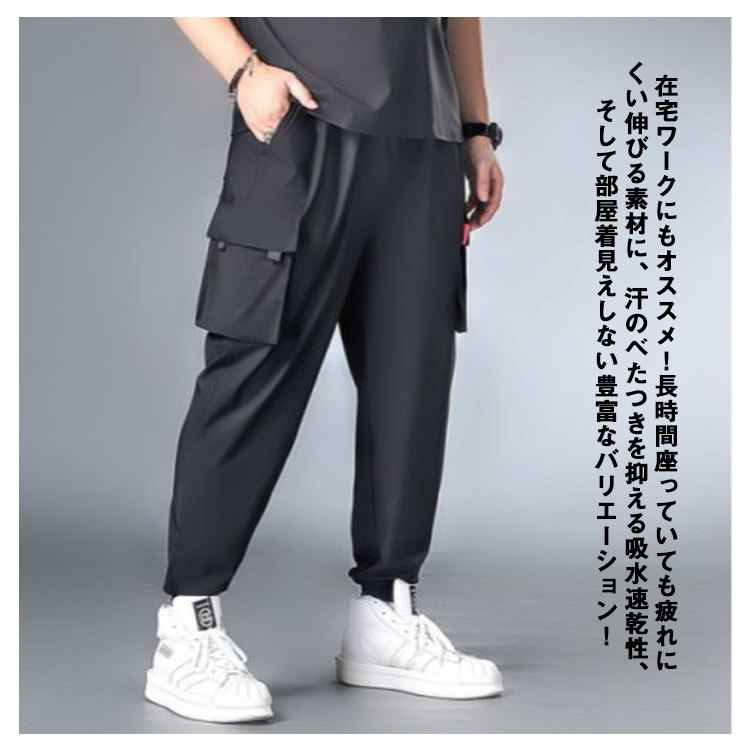 接触冷感 カーゴパンツ メンズ ロングパンツ 夏 ゆったり 薄手 ジョガーパンツ 作業着 ひんやり 涼しい 冷感パンツ スリム 美脚 6ポケット ウエストゴム カジュアルパンツ ワイドパンツ 無地 おしゃれ 大きいサイズ 送料無料
