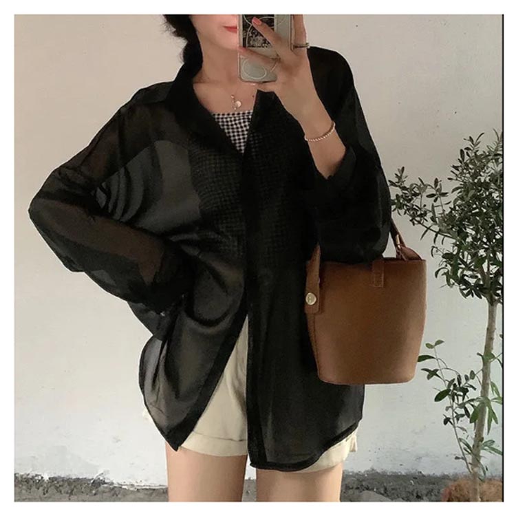 | 2色 シアーシャツ 可愛らしさと大人っぽさを兼ね備えた | |