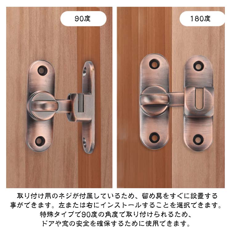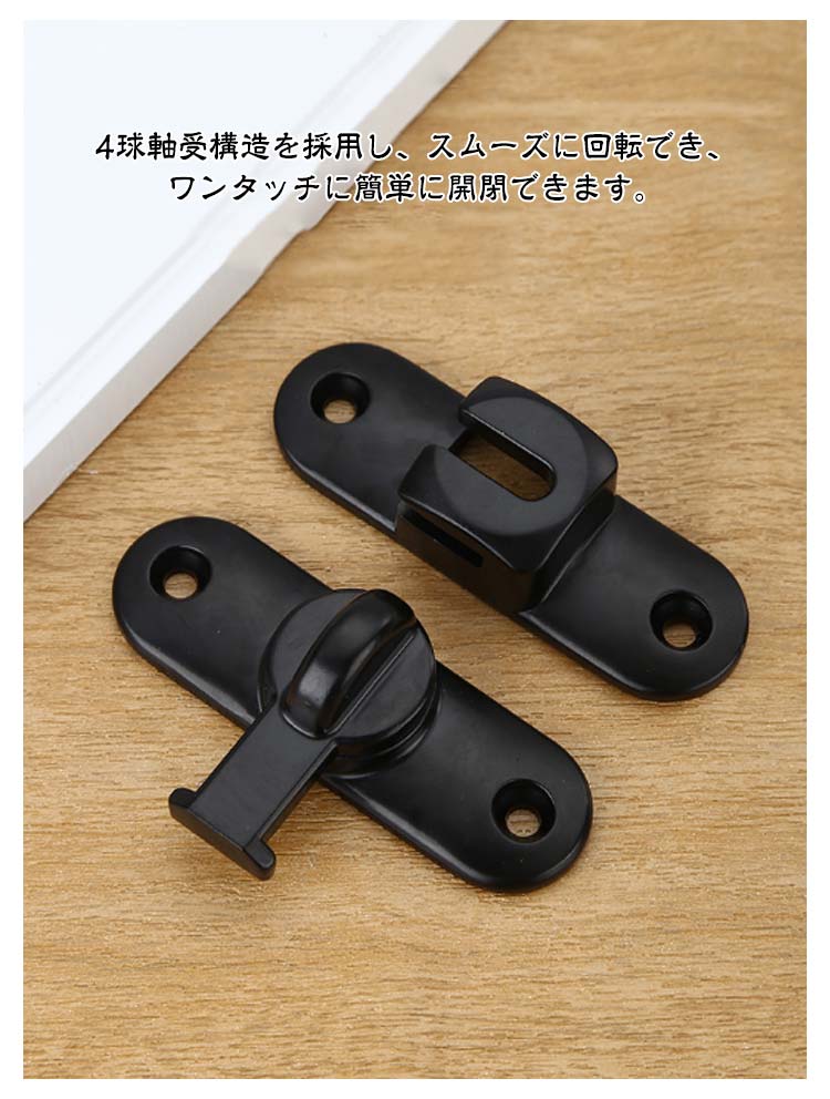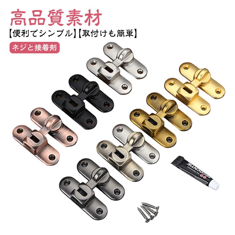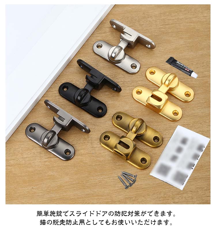 後付け 引き戸 窓 ドアロック 後付け 鍵 穴あけ不要 90度/180度 亜鉛合金 ネジ 接着剤 ドア留め金ロック ドアバックル 回転式 フリップラッチロック スライディングドア 引き戸 鍵 ロック 耐震ラッチ 防犯 部屋 取り付け簡単