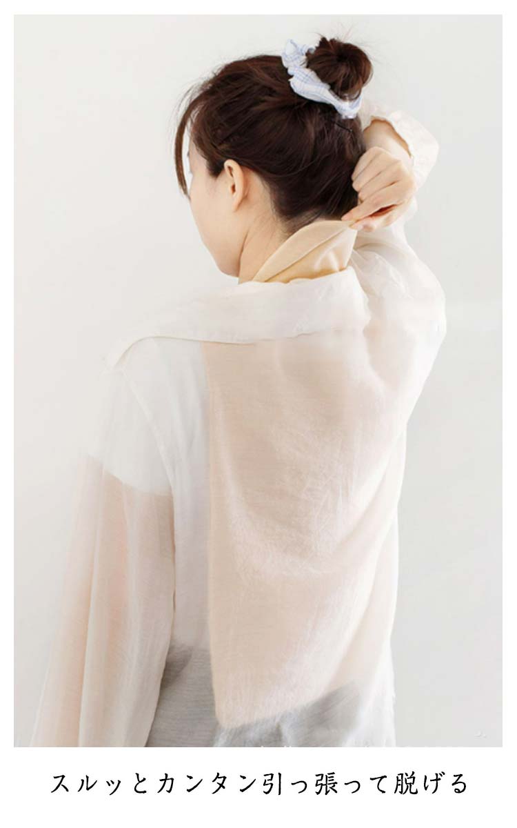 汗をよく吸い、脱ぐときはひっぱるだけ!汗びっしょりの放置は臭いも気になるし不快ですよね…スルッとカンタン引っ張って脱げる伝統技術と新しいアイデアで生まれた、ワンランク上の汗取りシャツ。服を着たままスルッと脱げる、気になる汗ジミも脱ぐだけでサラッ!