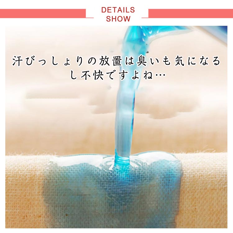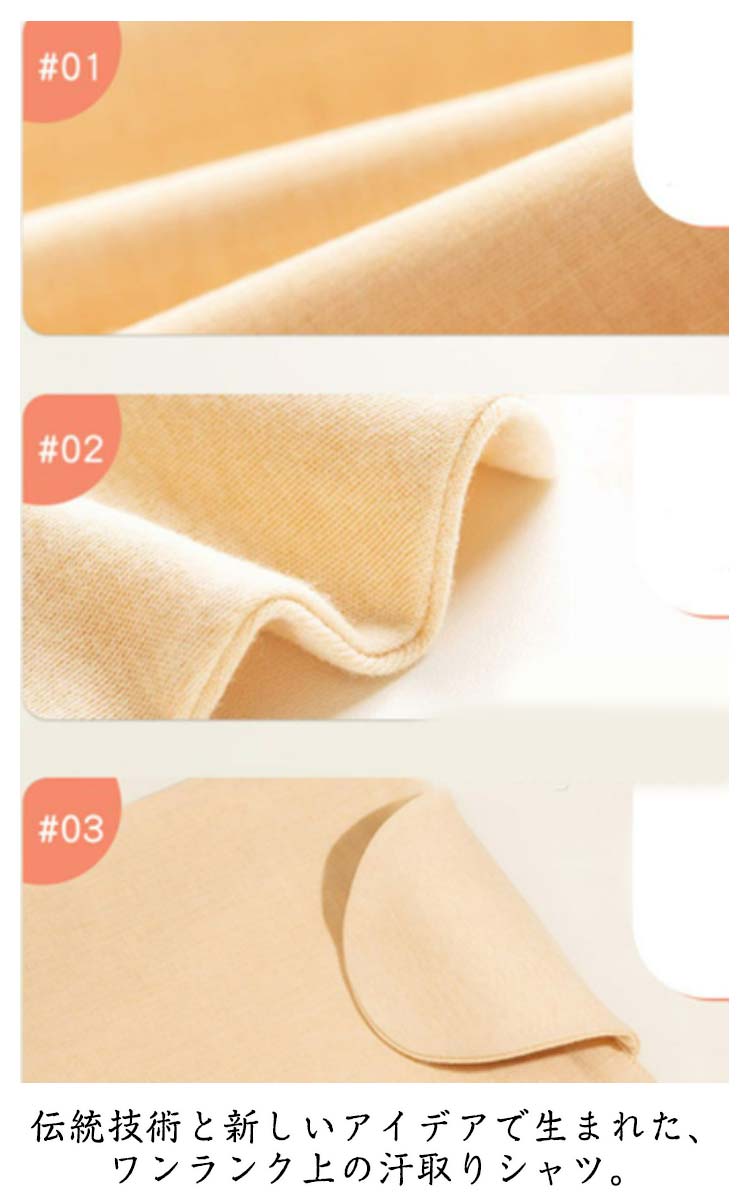 | 汗をよく吸い、脱ぐときはひっぱるだけ! 汗びっしょりの放置は臭いも気になるし不快ですよね… スルッとカンタン引っ張って脱げる 伝統技術と新しいアイデアで生まれた、ワンランク上の汗取りシャツ。 服を着たままスルッと脱げる、気になる汗ジミも脱ぐだけでサラッ! | |