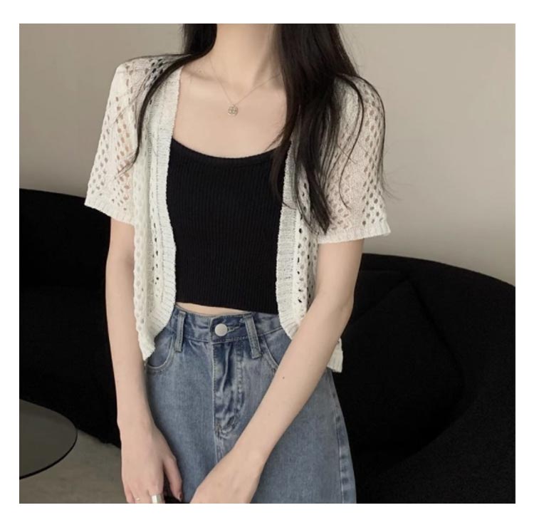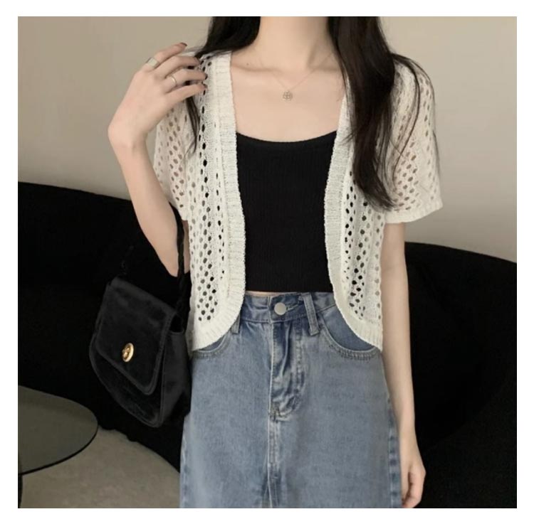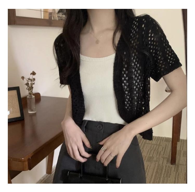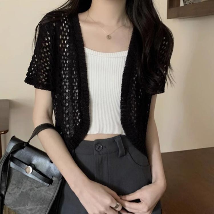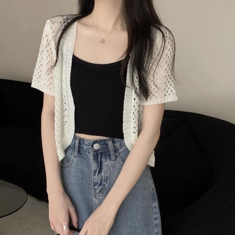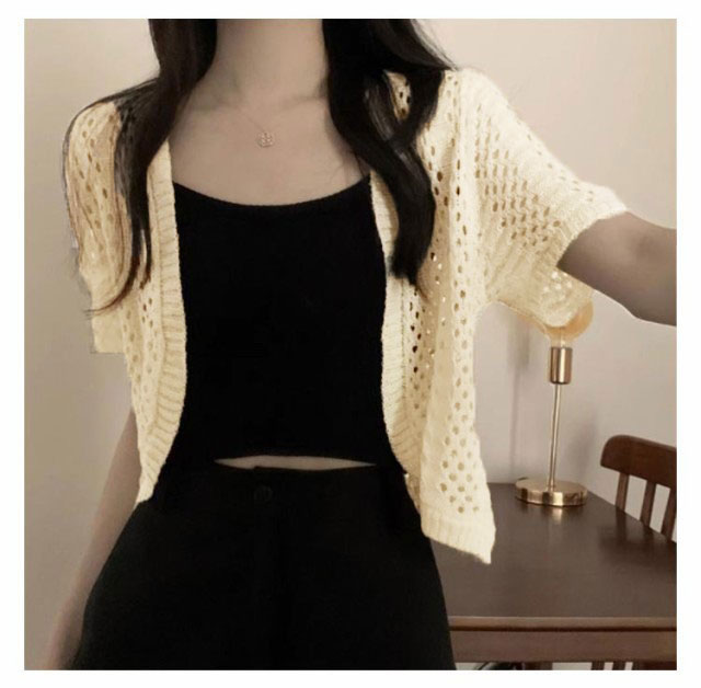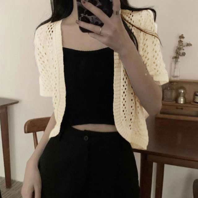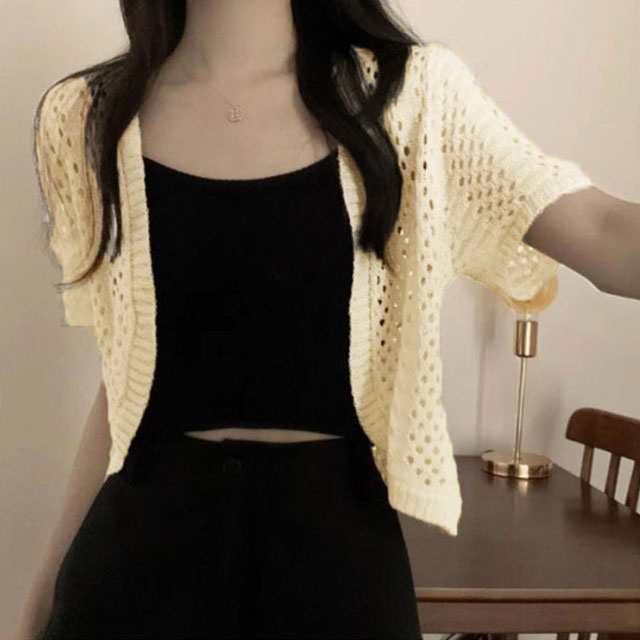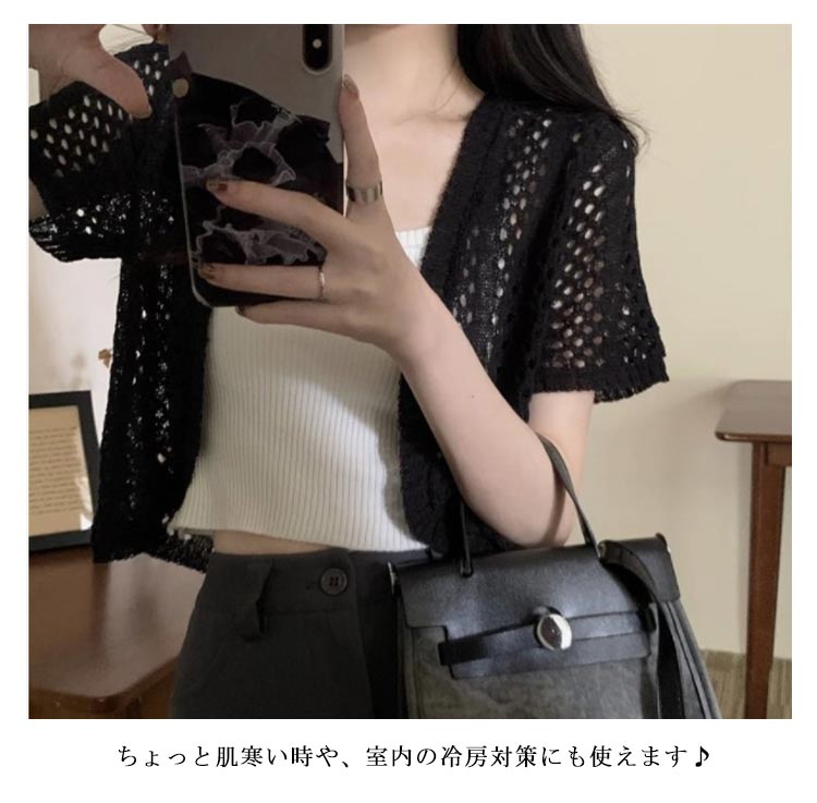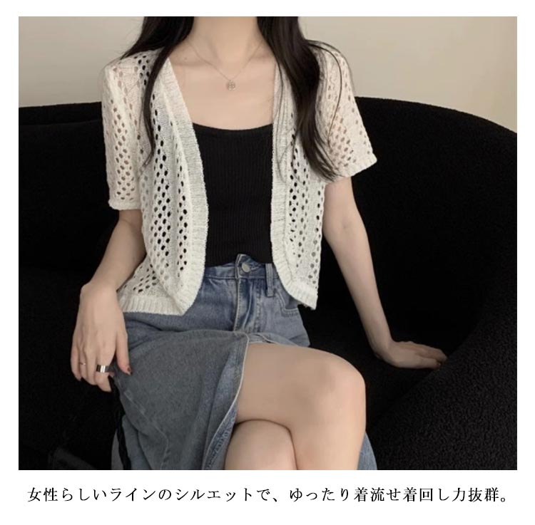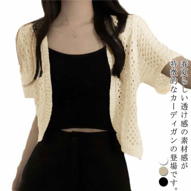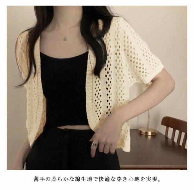 カーディガン レディース 透け感 半袖 サマーカーディガン ショート丈 透かし サマーニット 透かし編み カットワーク ボレロ 羽織り ニットカーディガン 薄手 透かし トップス 羽織り Vネック メッシュ袖 春夏 薄手 ふんわり 送料無料