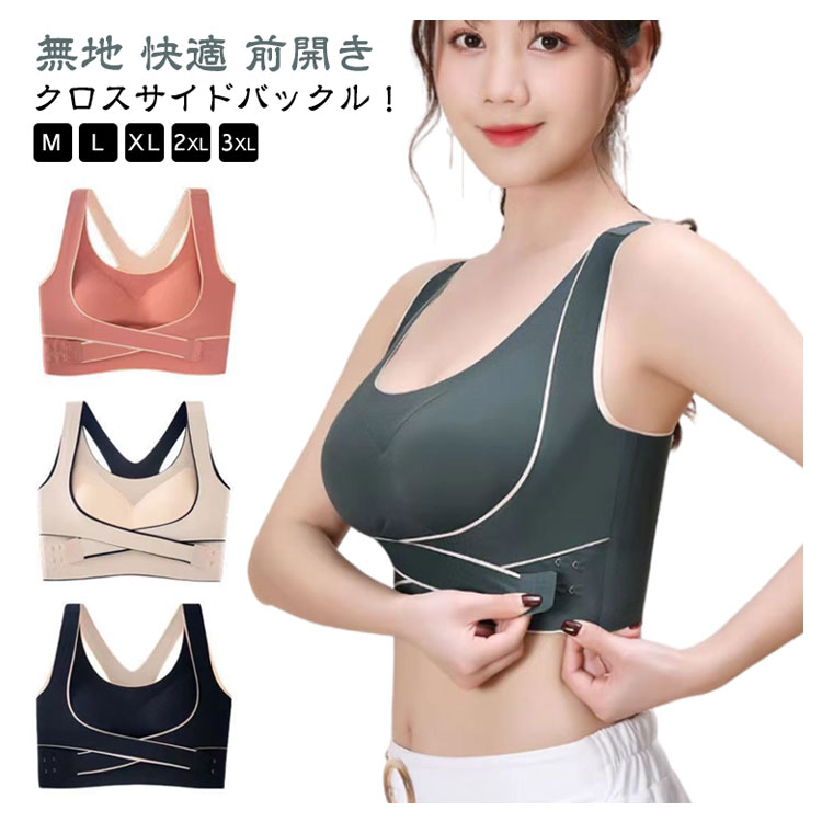 ブラジャー レディース ノンワイヤー ブラ スポーツブラ 揺れない サポート 猫背矯正 ブラジャー 前開き 前ホック クロスサイドバックル 育乳ブラ 脇高ブラ 補正 下着 ランニング ウォーキング スポーツウェア ジム ストレッチ 無地 快適 フィットネスブラ 送料無料