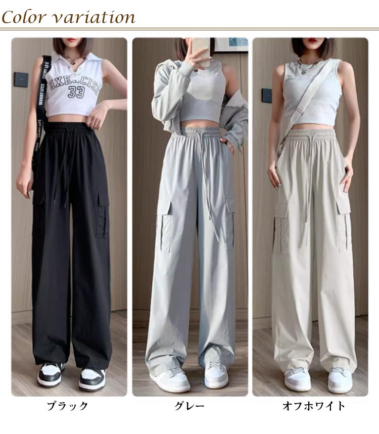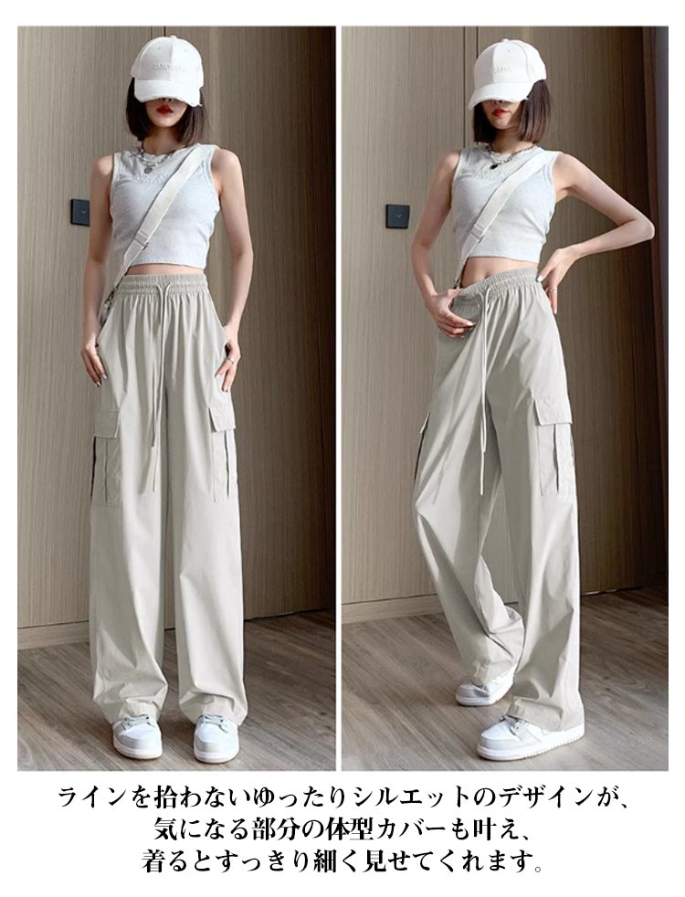 接触冷感 カーゴパンツ レディース ゆったり アイスシルク ワイドパンツ 春夏 無地 パンツ 作業ズボン ストレートパンツ ウエストゴム 美脚 uvカット 快適 ポケット ひんやり 涼しい ロングパンツ カジュアル 楽ちん 体型カバー 20代 30代 40代