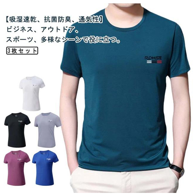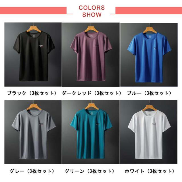 3枚セット!涼しい アイスシルク tシャツ メンズ レディース 男女兼用 接触冷感 トップス 吸汗速乾 ドライ カットソー 半袖tシャツ クルーネック トレーニング 大きいサイズ シンプル 黒 白 部屋着 スポーツ アウトドア ランニング 夏服 スポーツウェア カジュアル 送料無料