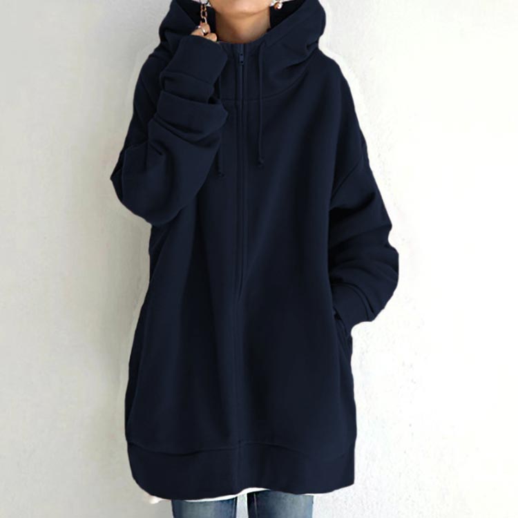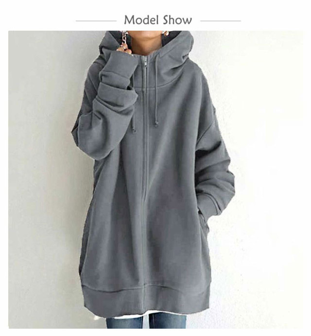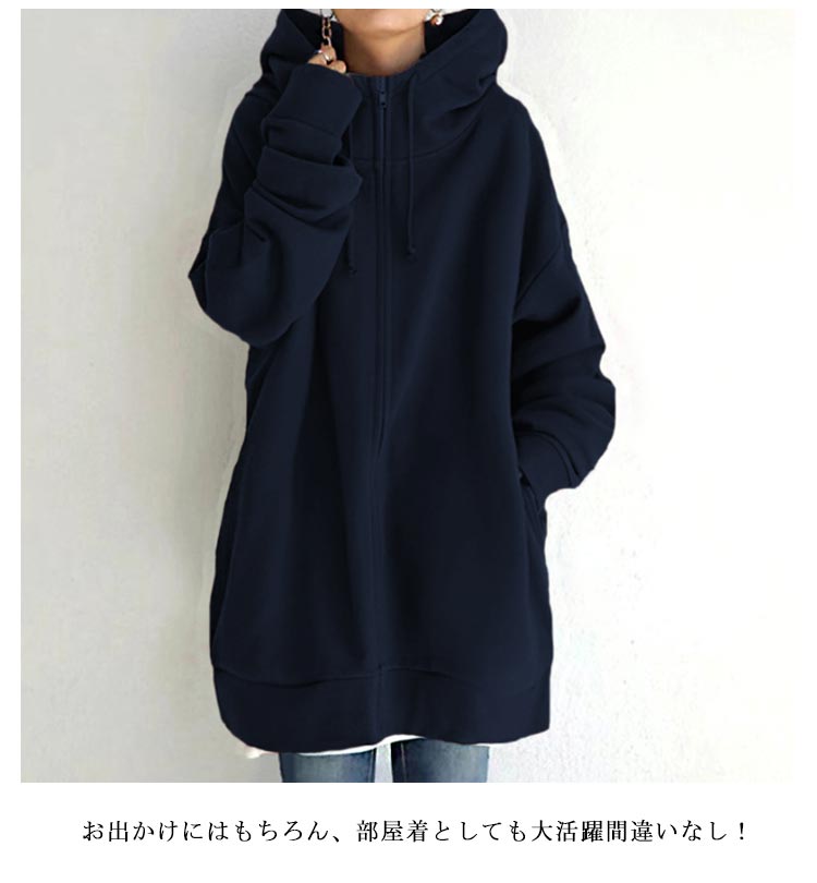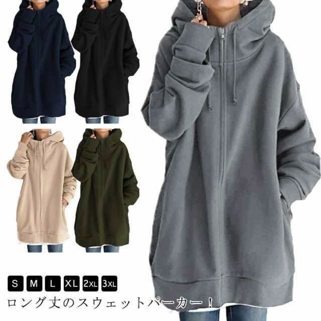 送料無料 パーカー レディース 長袖 スウェット ロング丈 パーカー ボリュームネック ハイネック フード付き ジップアップパーカー 無地 薄 裏起毛 ロングカーディガン ロングパーカー トップス 体型カバー 着痩せ あったか おしゃれ ゆったり 大きいサイズ 防寒 秋冬 春