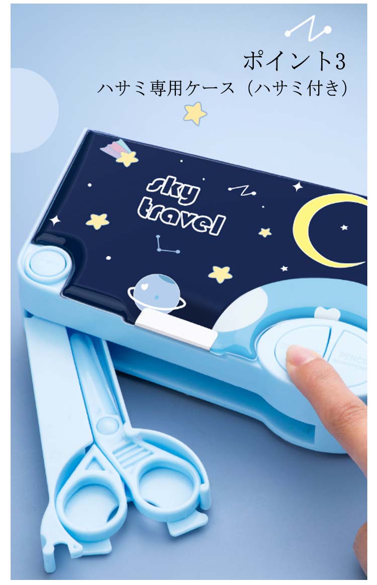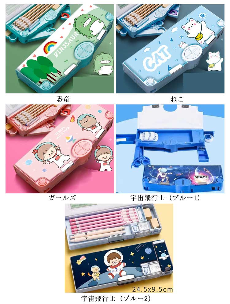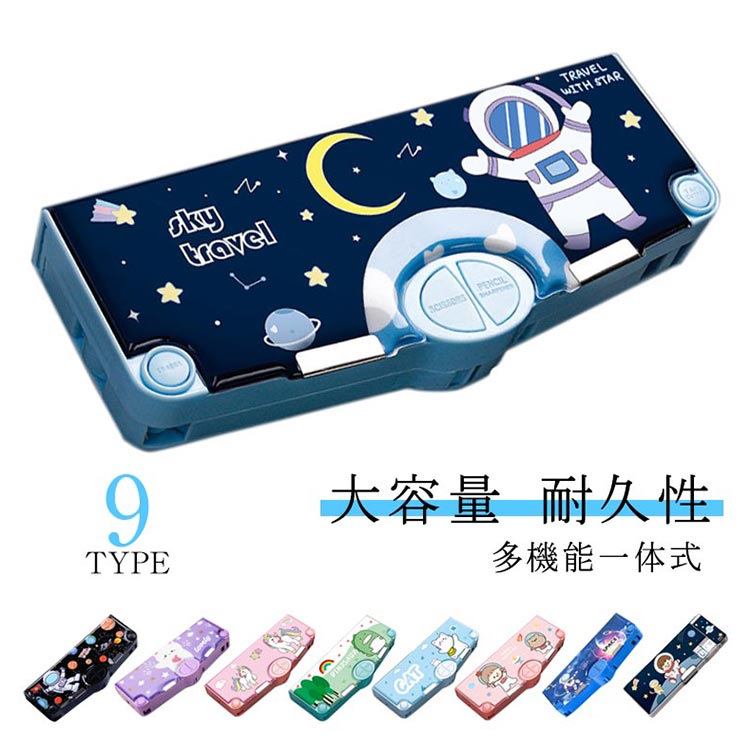 | 多機能一体式 9TYPE ポイント1 五穴筆入れ ポイント2 消しゴムケース ポイント3 ハサミ専用ケース(ハサミ付き) ポイント4 鉛筆削り+小物入れ ポイント5 テープ収納リング(テープ付き) | |