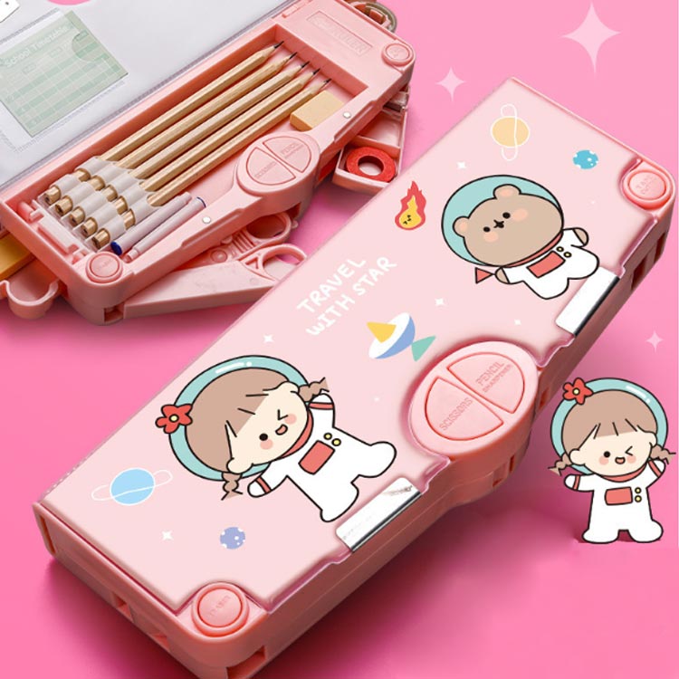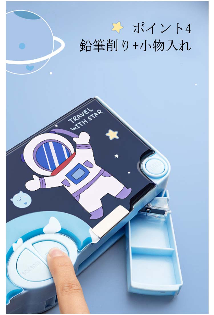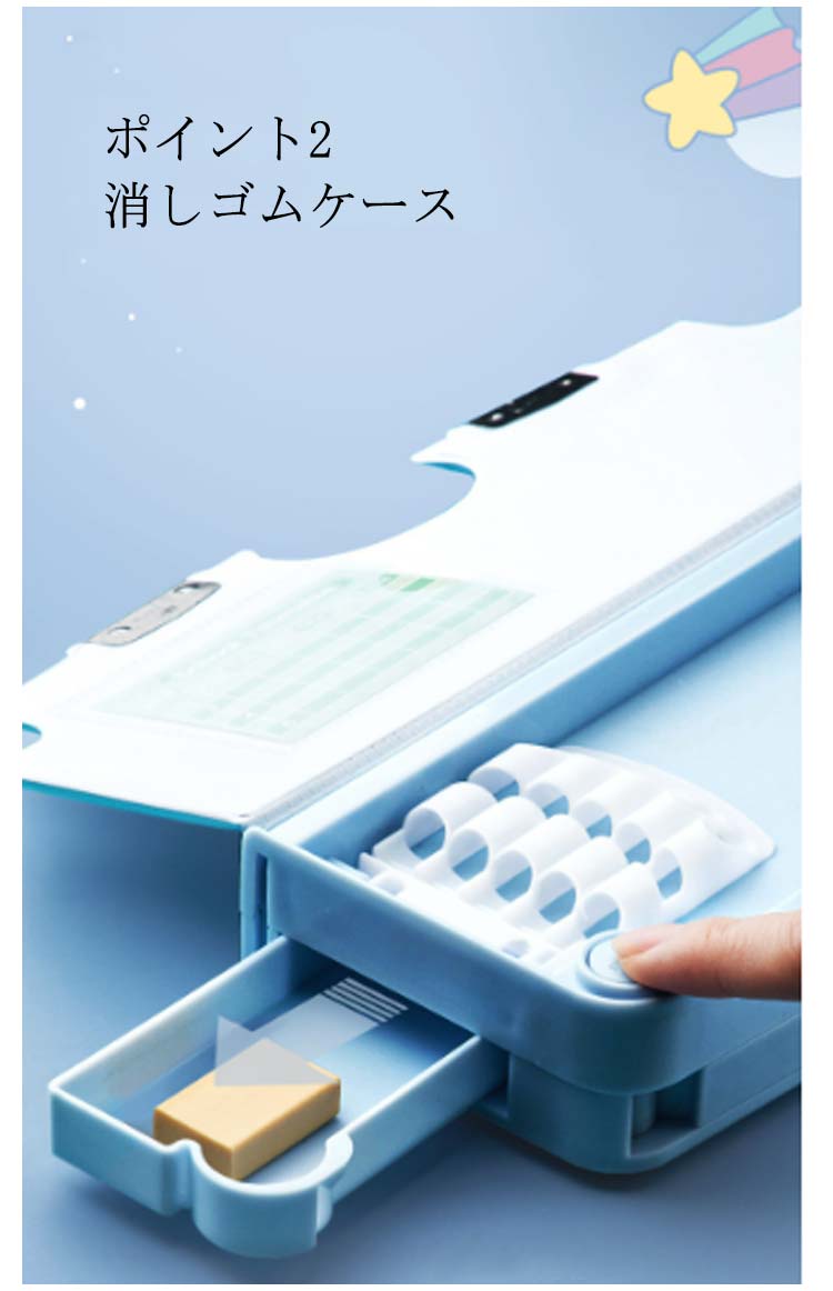 ペンケース 筆箱 ふでばこ ぼたん筆箱 鉛筆削り付き 両面開き ハサミ 消しゴム 物差し テープ収納リング 筆入れ 時間割表 小物入れ 大容量 多機能 軽量 耐久性 マグネット コンパクト 男の子 女の子 小学生 小学校
